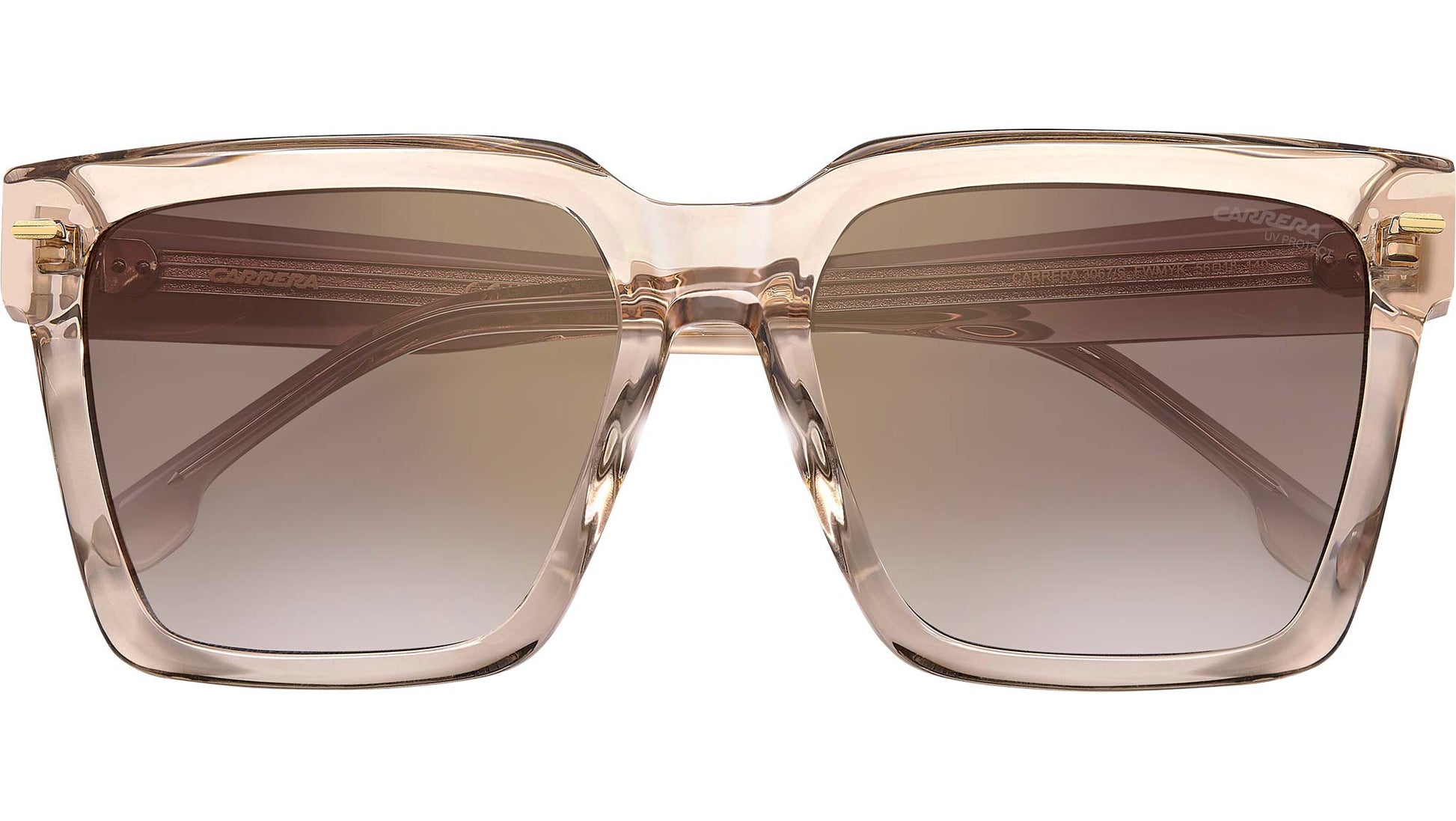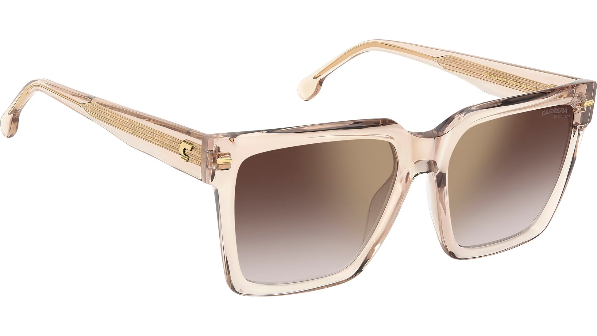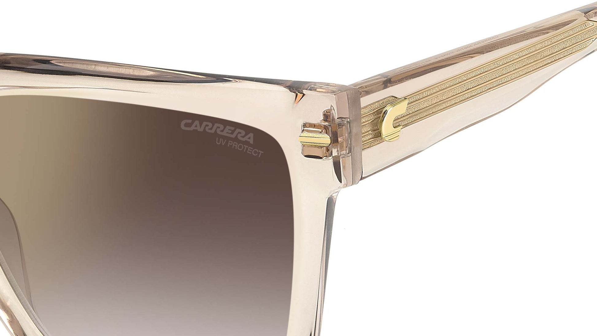 Carrera 3067/S FWM YK sunglasses for women, featuring nude rectangular acetate frame and gold mirror on burgundy shaded lenses. Classic in their square shape, Carrera in their style: these women's sunglasses in acetate are embellished by rivets on the front and an embossed 'C' on the temples. Choosing a colour will be a pleasure, thanks to transparent and multilayer options, and gradient lenses that are either plain or mirrored. The frames can be fitted with prescription lenses. Brand line: Signature. Style code: 207951. Color code: FWM YK. Authorized Carrera online reseller. Your glasses will include the original case and accessories and are covered by a 12-month global warranty.