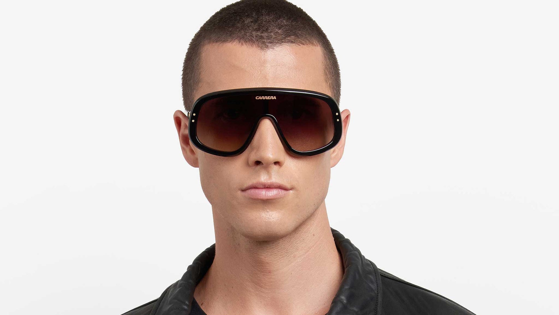 Carrera FLAGLAB 17 2M2 86 sunglasses for men, featuring black gold shield acetate frame and black brown green antireflex lenses. These Carrera sunglasses bring a sporty attitude to fashion. The shield front is profiled by acetate, printed with a logo on the lens. The temples are a true gem: their round vents echo the design of the steering wheels on the classic cars which raced in the Carrera Panamericana. Versions with yellow or orange lenses give rise to a truly evocative look. This collector's item comes with its own special packaging. Brand line: Flag. Style code: 207556. Color code: 2M2 86. Authorized Carrera online reseller. Your glasses will include the original case and accessories and are covered by a 12-month global warranty.