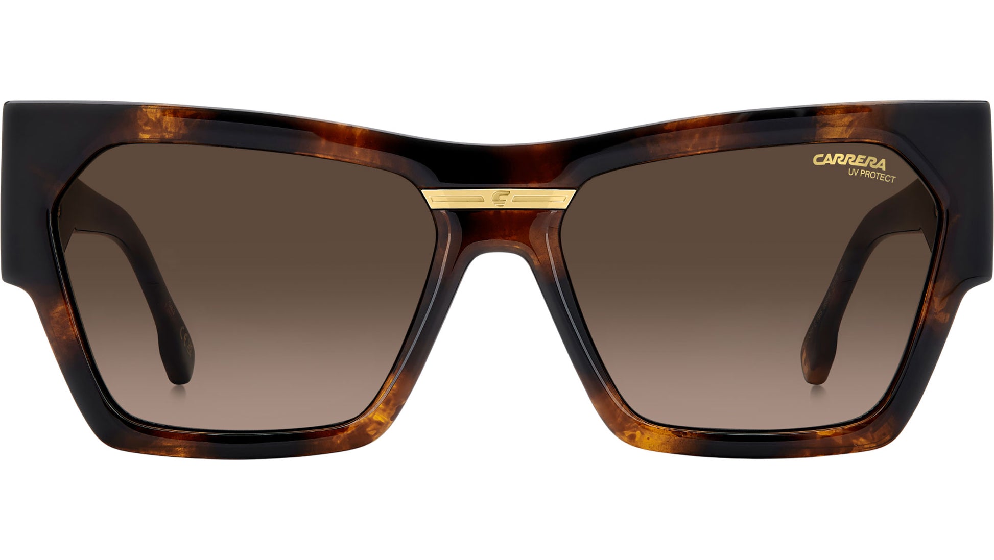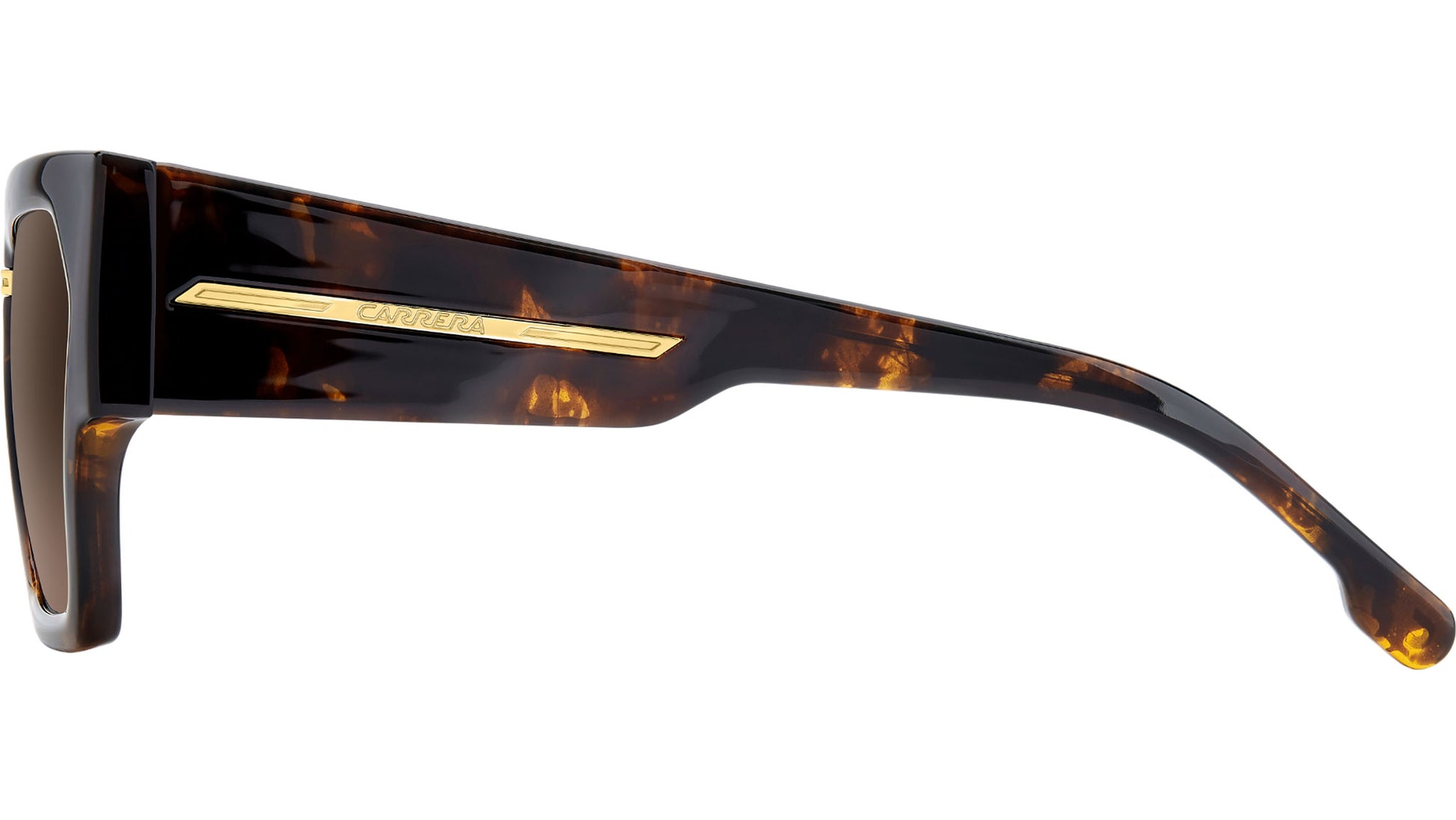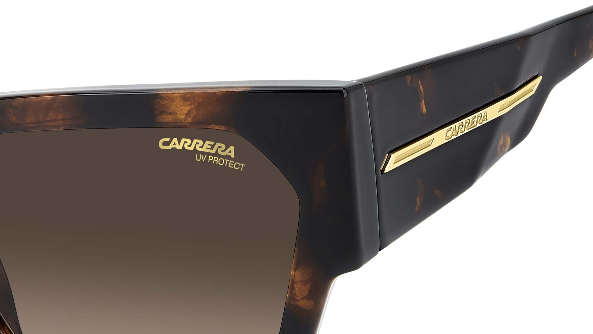 Carrera VICTORY C 19/S 086 HA sunglasses for women, featuring havana rectangular eco polyamide frame and brown shaded lenses. Made-in-Italy sunglasses with a bold attitude. These Carrera frames feature a modern cat-eye front and new oversized temples for the season. The Victory ‘C’ metal plaque adds an iconic touch. Available in classic black and gold or seasonal colours, including a transparent option. Brand line: Flag. Style code: 208322. Color code: 086 HA. Authorized Carrera online reseller. Your glasses will include the original case and accessories and are covered by a 12-month global warranty.