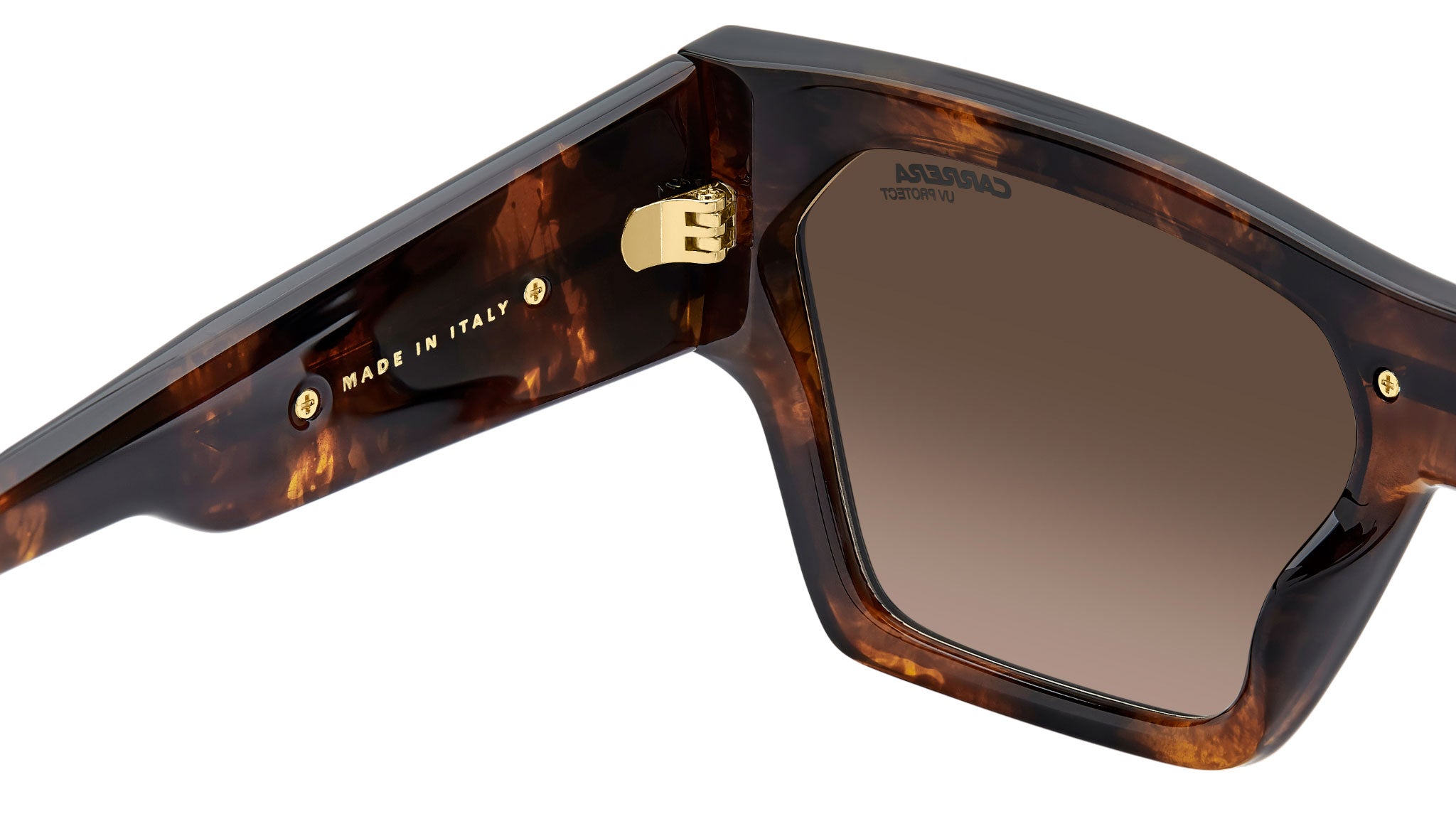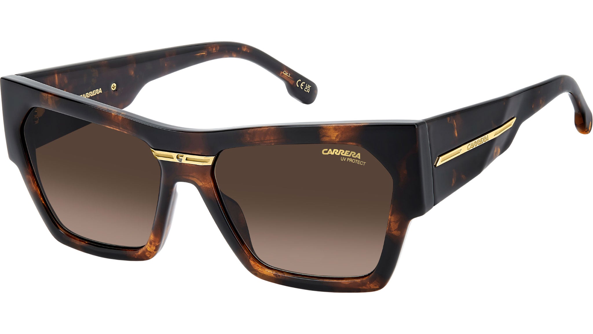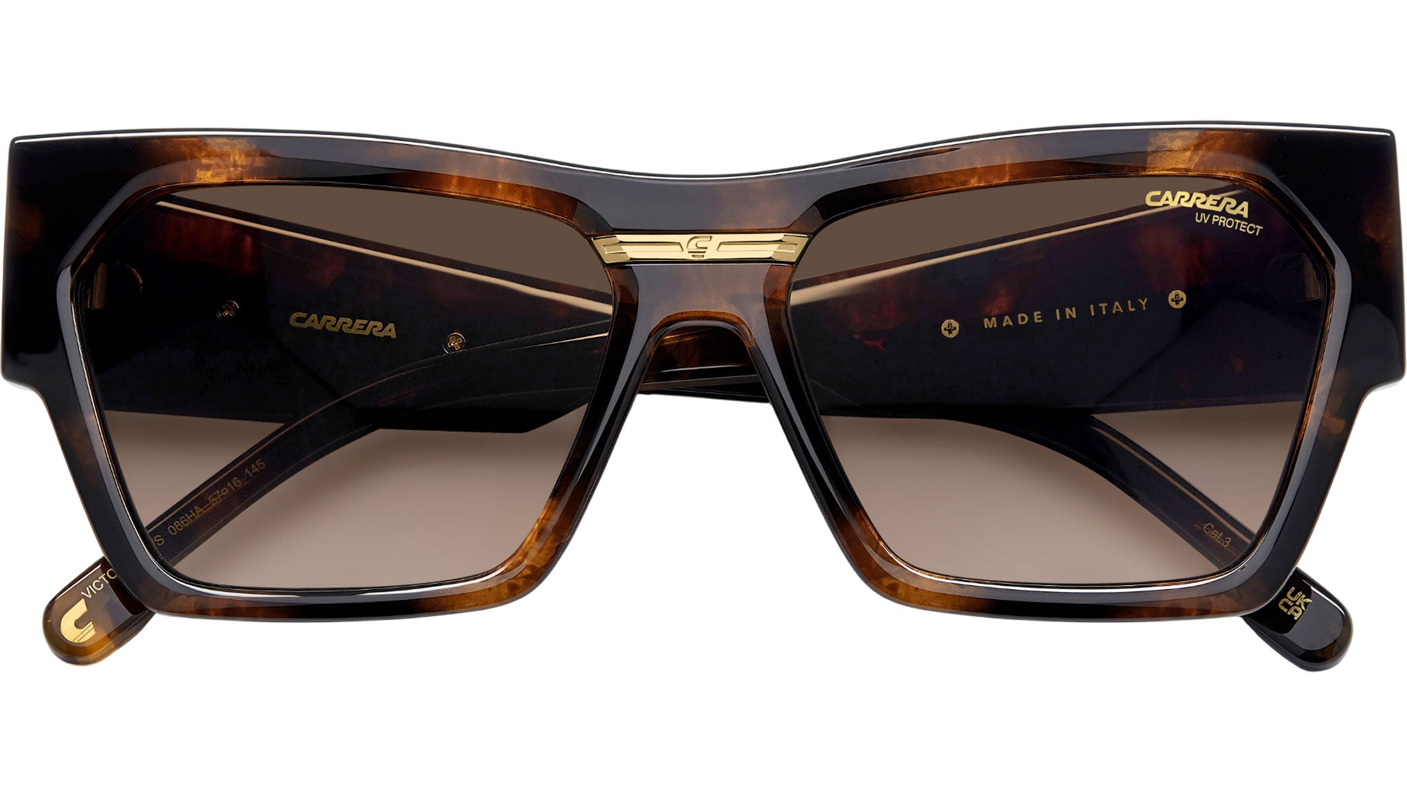 Carrera VICTORY C 19/S 086 HA sunglasses for women, featuring havana rectangular eco polyamide frame and brown shaded lenses. Made-in-Italy sunglasses with a bold attitude. These Carrera frames feature a modern cat-eye front and new oversized temples for the season. The Victory ‘C’ metal plaque adds an iconic touch. Available in classic black and gold or seasonal colours, including a transparent option. Brand line: Flag. Style code: 208322. Color code: 086 HA. Authorized Carrera online reseller. Your glasses will include the original case and accessories and are covered by a 12-month global warranty.