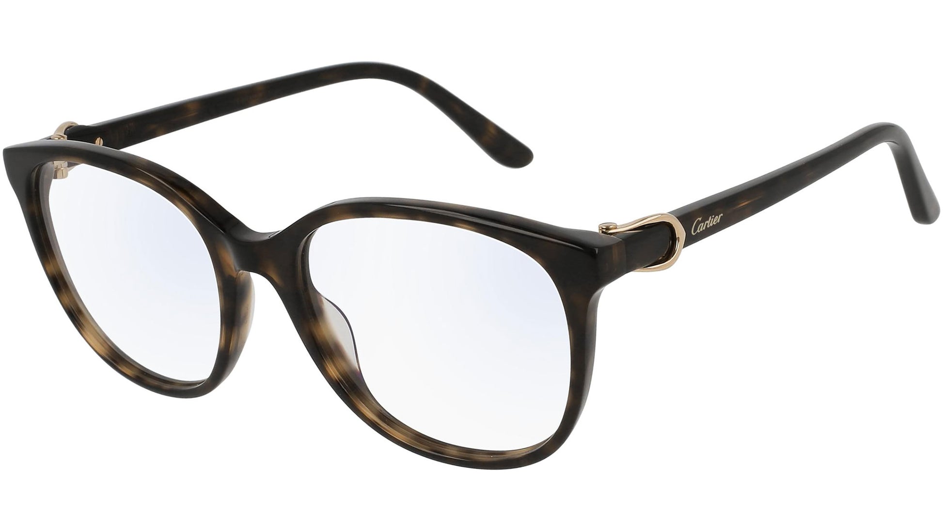 Cartier Initiation optical collection model CT0007O 002 featuring shiny dark havana frame and havana temple.