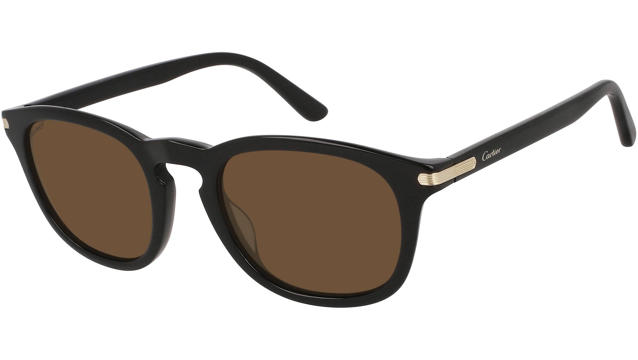 Cartier CT0011S 001 sunglasses with shiny black frame and solid brown + inner AR lens.