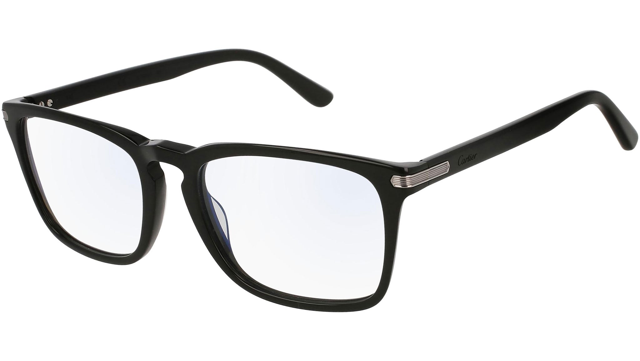 Cartier Initiation optical collection model CT0019O 007 featuring shiny black frame and black temple.