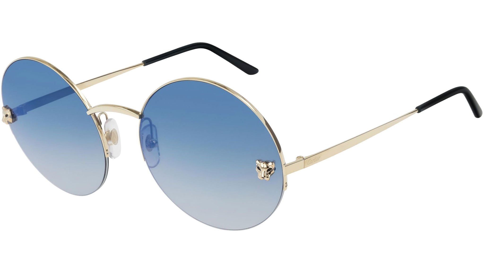 Cartier CT0022S 007 sunglasses with smooth golden frame and gradient blue + triflection gun blue + red lens.