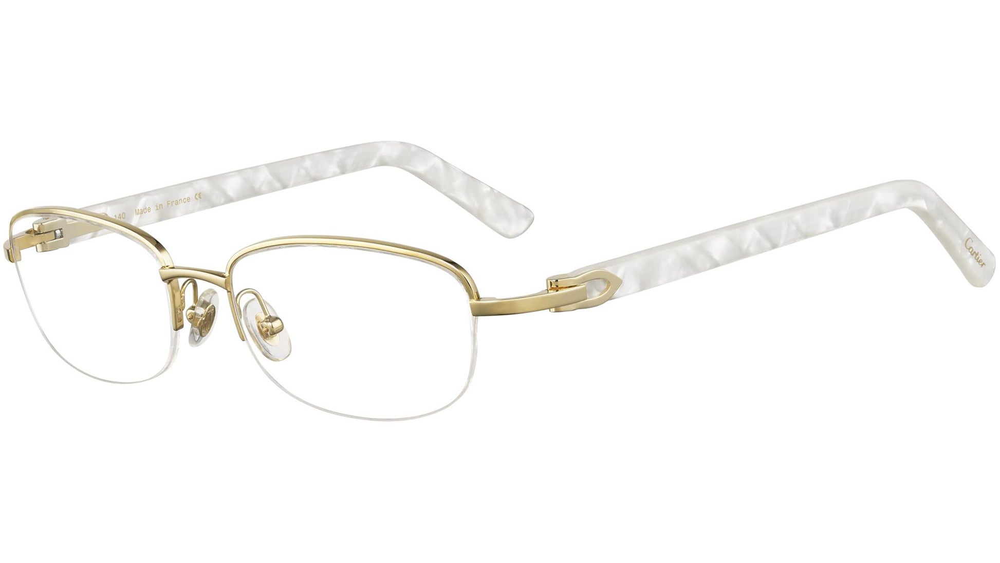Cartier Core Range optical collection model CT0057O 003 featuring gold frame and white temple.