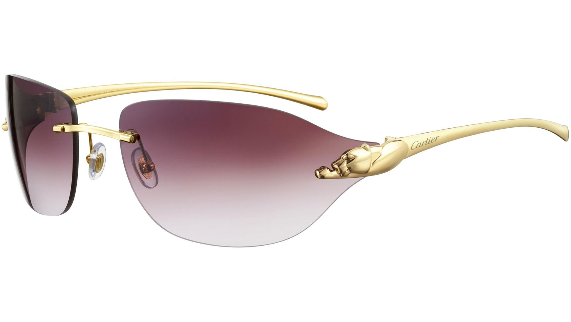 Cartier CT0068S 001 sunglasses with gold frame and violet lens.