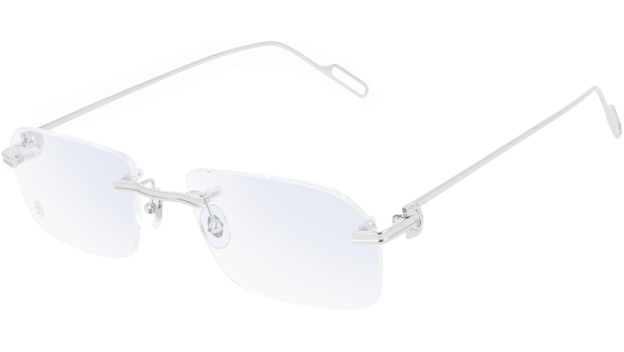 Cartier Core Range optical collection model CT0162O 002 featuring smooth platinum frame and silver temple.