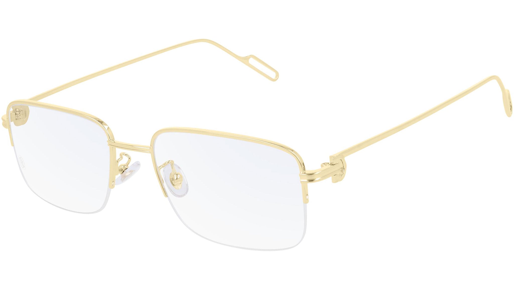 Cartier Core Range optical collection model CT0218OA 001 featuring smooth golden frame and gold temple.