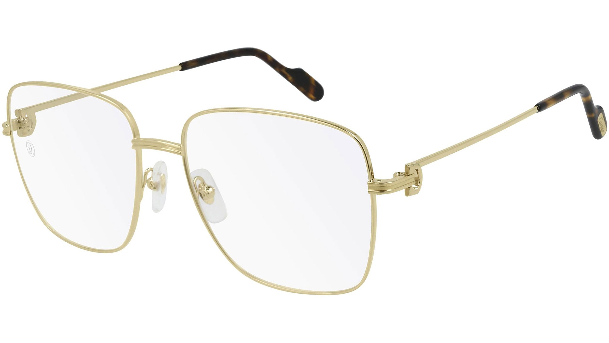 Cartier Core Range optical collection model CT0253O 002 featuring smooth golden frame and gold temple.