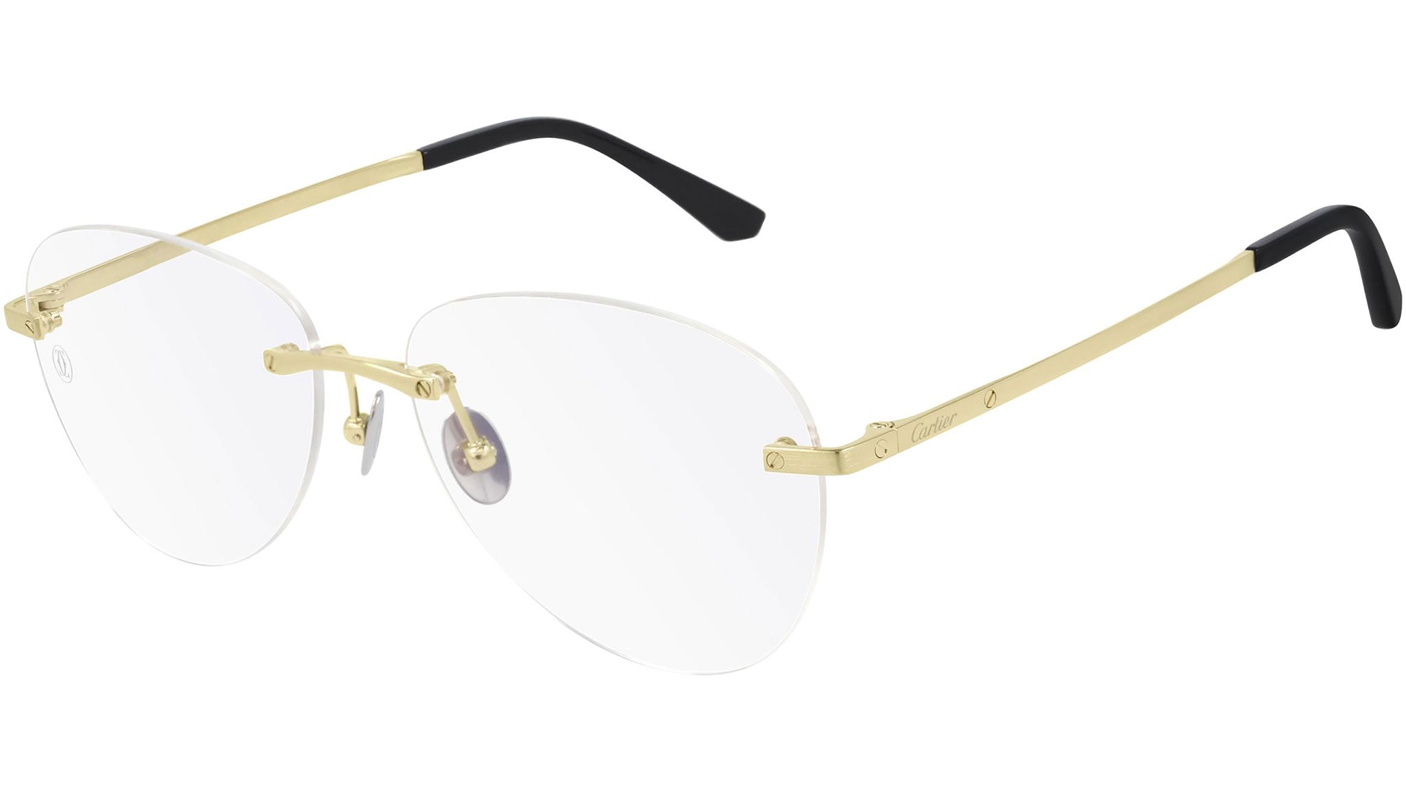 Cartier Core Range optical collection model CT0254O 001 featuring brushed golden frame and gold temple.