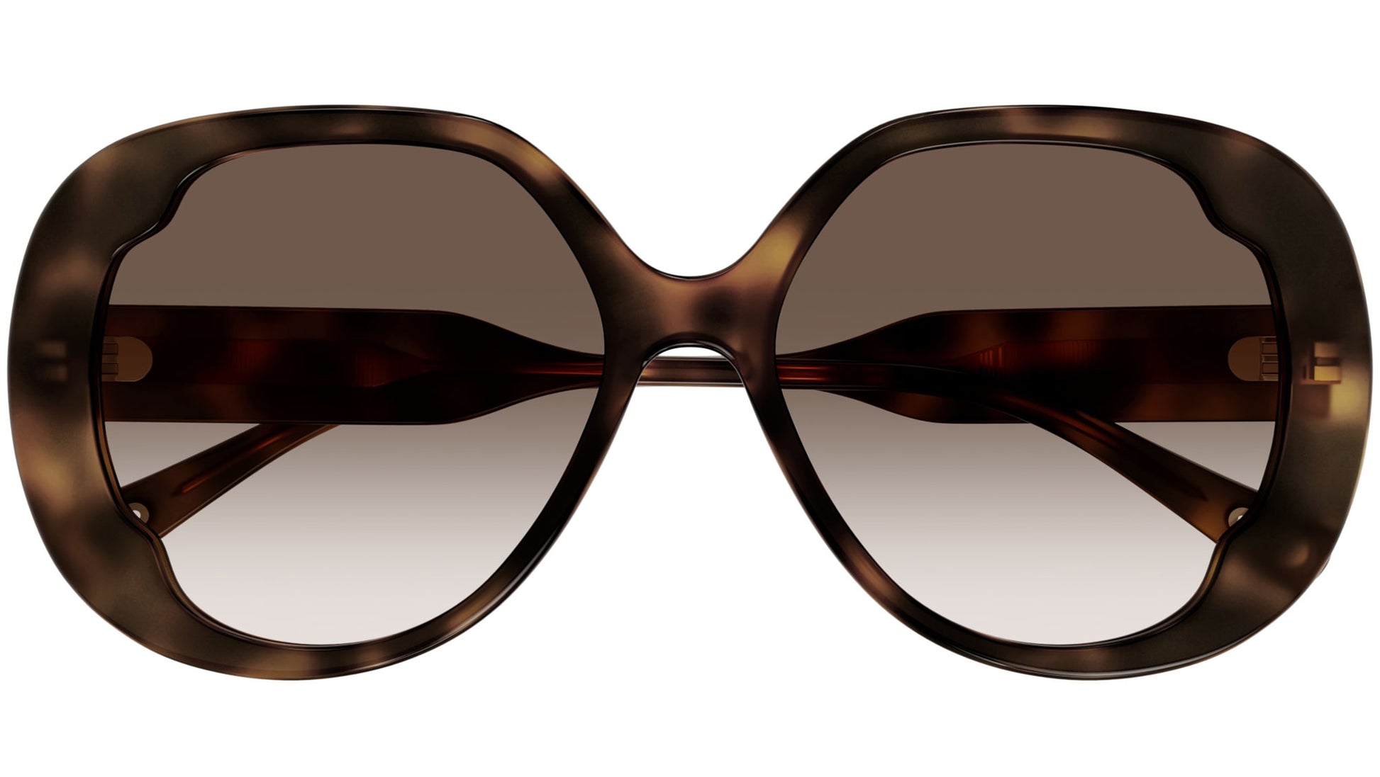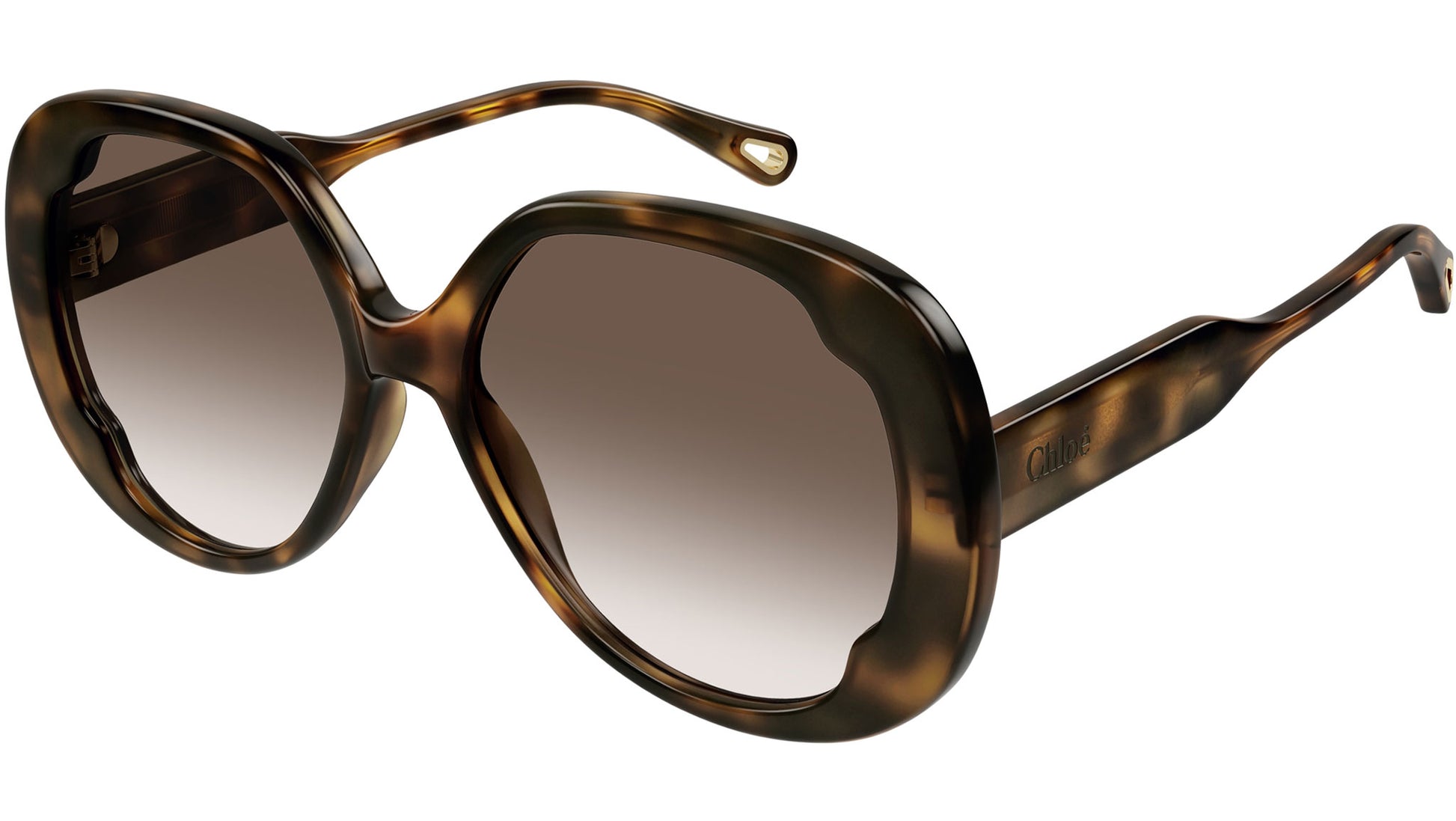 Chloé CH0195S 002 sunglasses for women, featuring shiny medium havana butterfly recycled acetate frame and gradient brown bio nylon lenses. Brand line: Chloé. Style code: CH0195S. Color code: 002. Made in Italy. Authorized Chloé online reseller. Your glasses will include the original case and accessories and are covered by a 12-month global warranty.