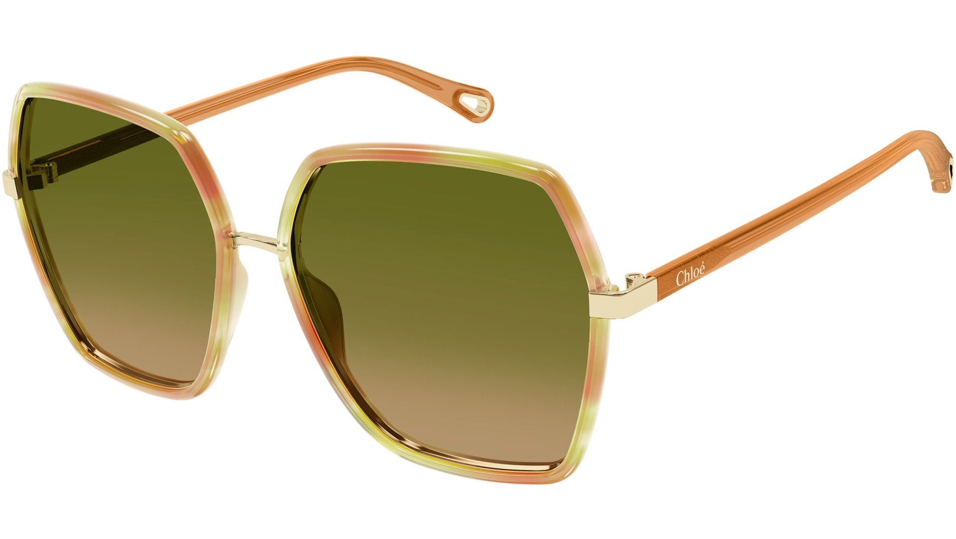 Chloé CH0262S 004 Green Spot Peach Rectangular Sunglasses