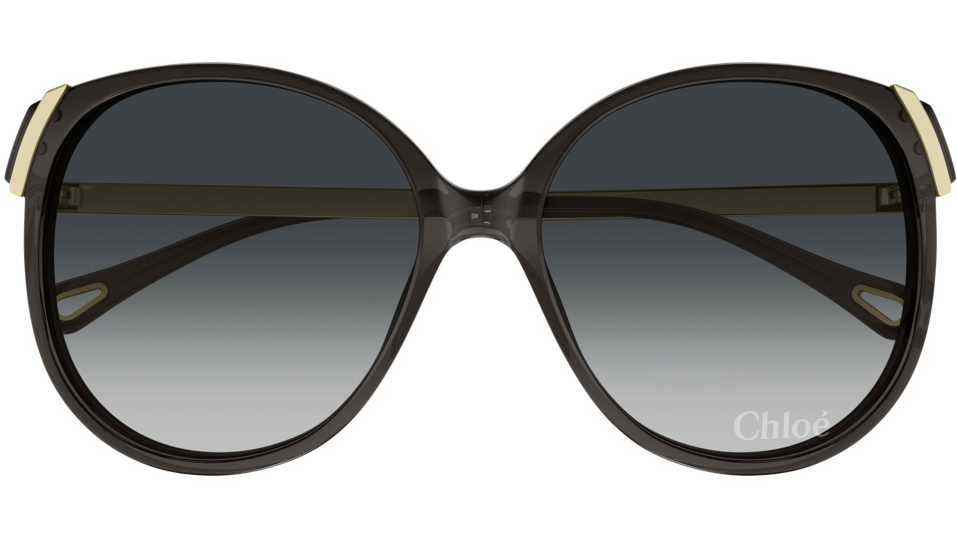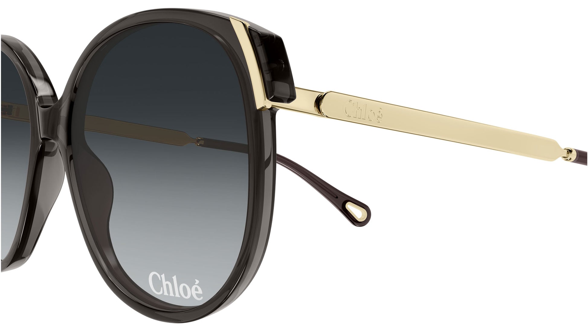 Chloé CH0285S 001 sunglasses for women, featuring shiny transparent dark gray rectangular recycled acetate frame and gradient grey-green bio nylon lenses. Brand line: Chloé. Style code: CH0285S. Color code: 001. Made in Italy. Authorized Chloé online reseller. Your glasses will include the original case and accessories and are covered by a 12-month global warranty.