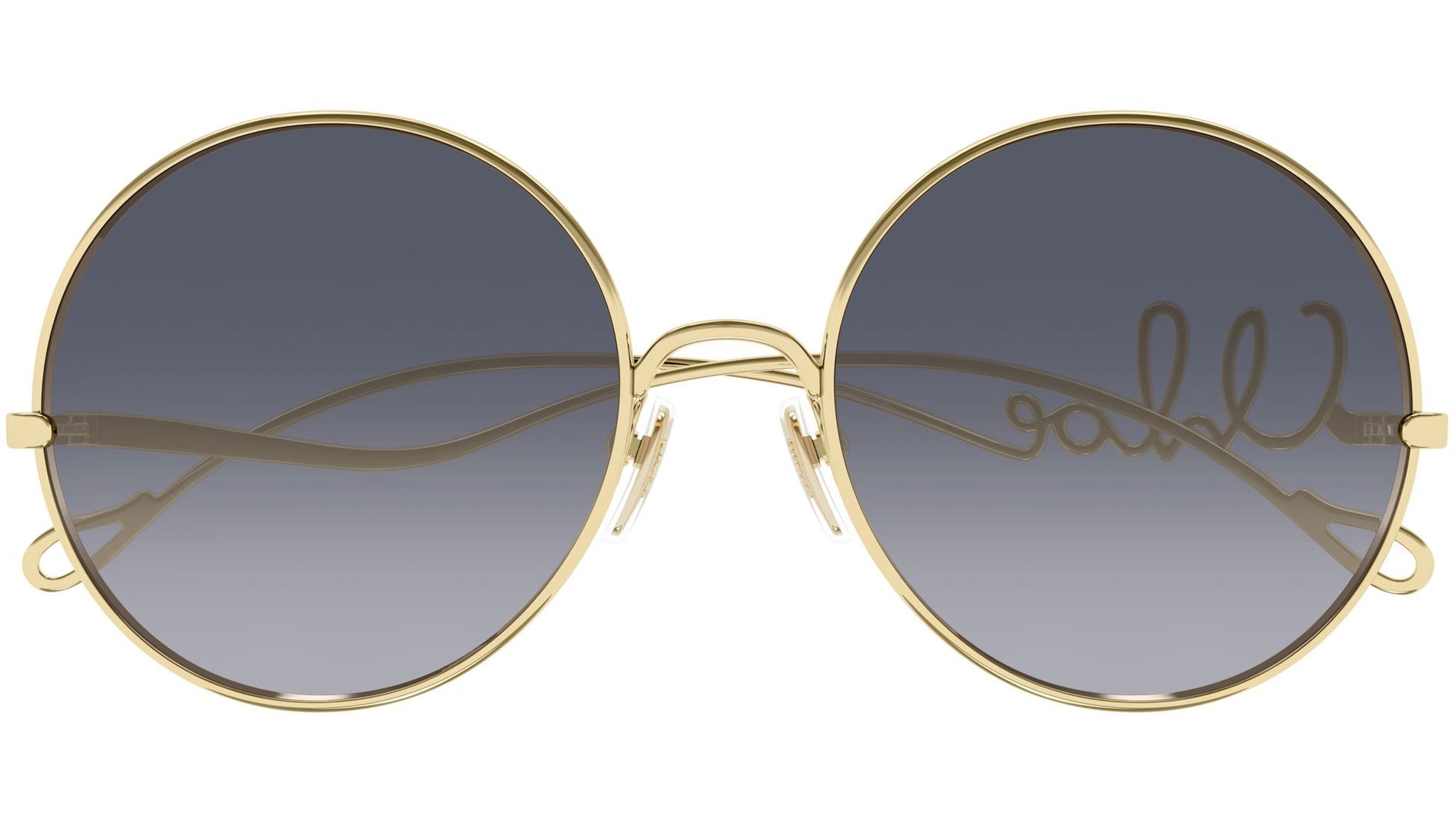 Chloé CH0372S 004 sunglasses for women, featuring shiny endura gold panthos metal frame and gradient violet bio nylon lenses. Brand line: Chloé. Style code: CH0372S. Color code: 004. Made in Japan. Authorized Chloé Eyewear online reseller. Your glasses will include the original case and accessories and are covered by a 12-month global warranty.