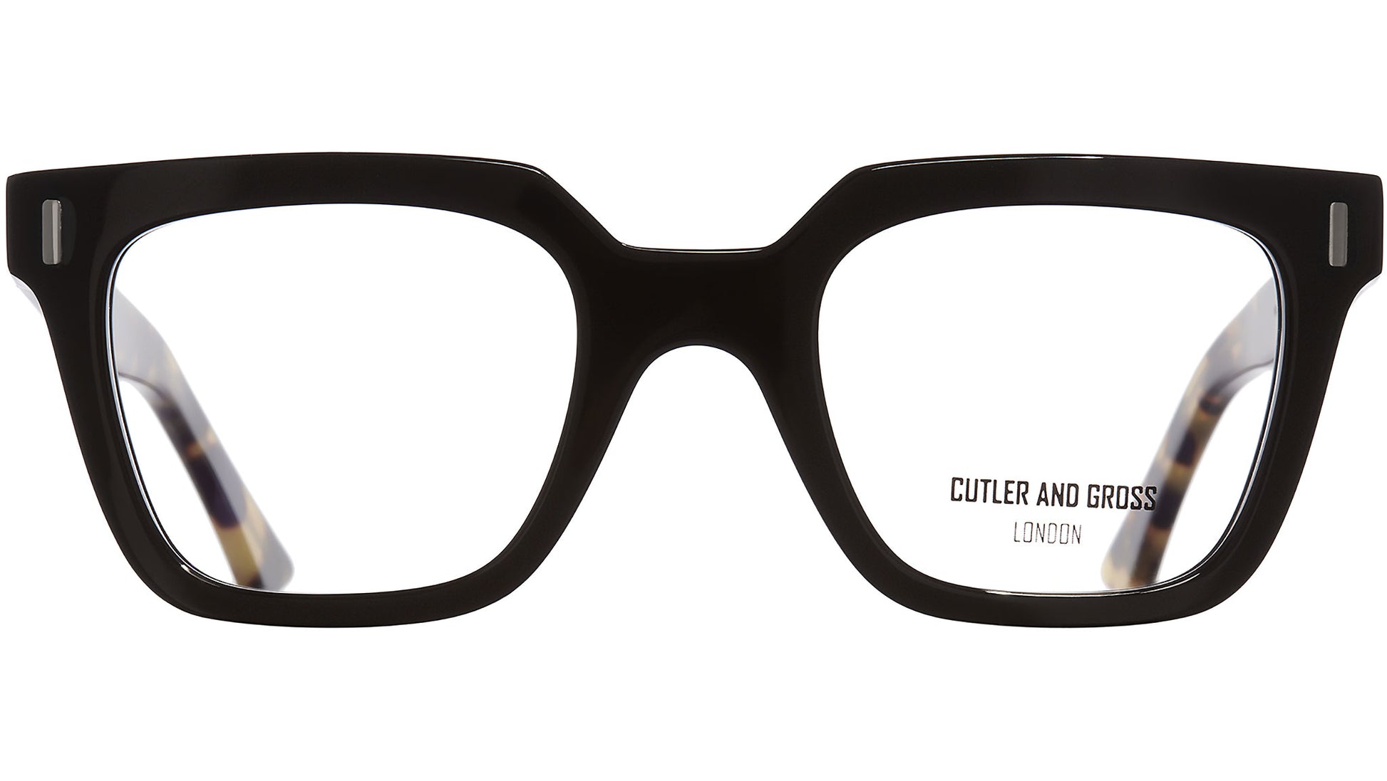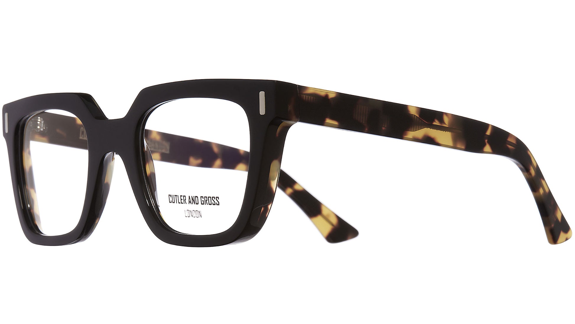 The Cluter and Gross specialised weight reduction process which involves reverse milling of 9mm acetate, enables the 1305 to be both chunky and maintain lightness for comfort. The result is a double finishing process where the acetate is milled from behind, tumbled and cut twice to maintain its defined, angular edges.
