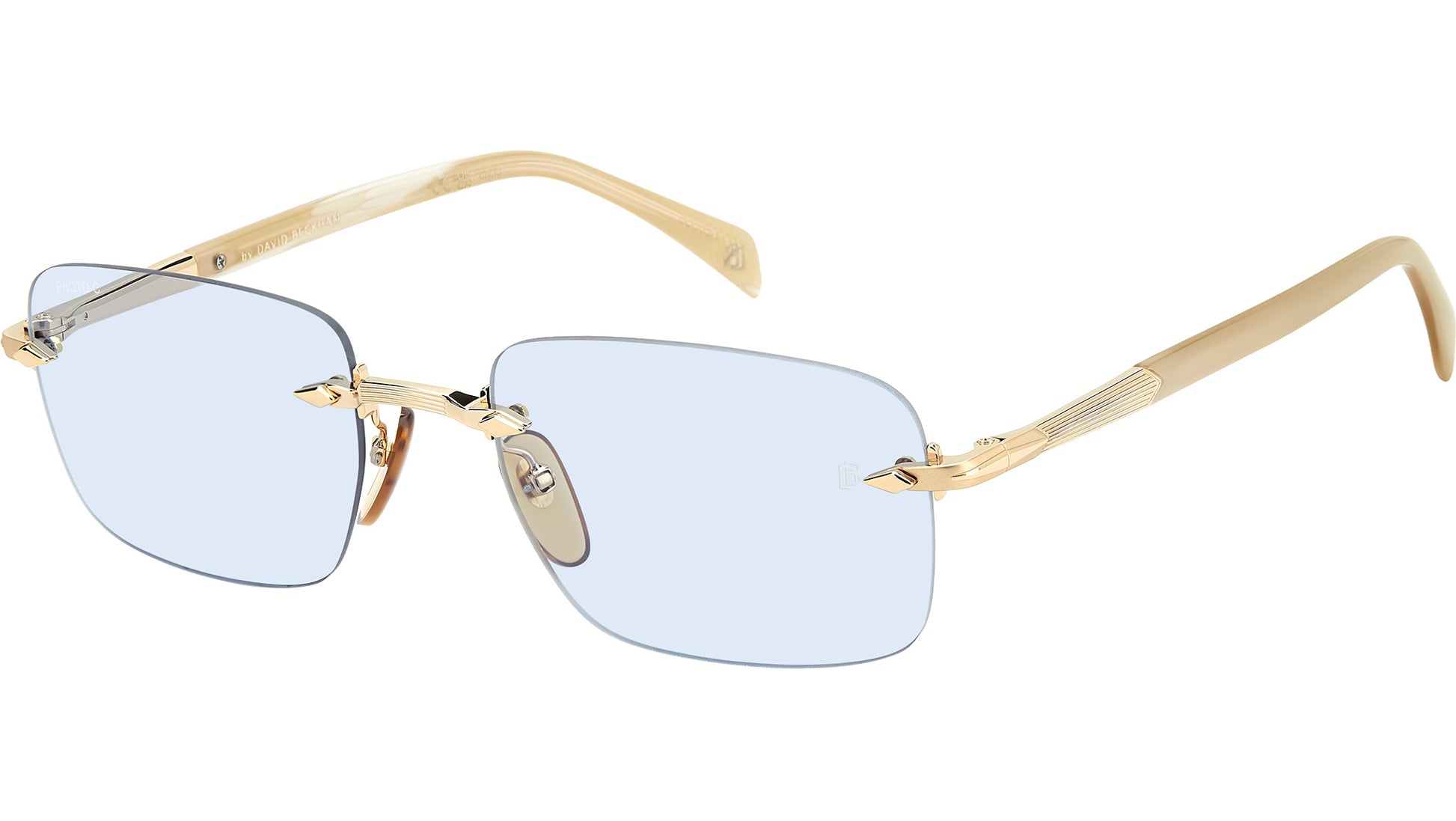 David Beckham DB 1195/S IDA QZ sunglasses for men, featuring gold beige horn rectangular metal frame and azure photocromatic lenses. These Eyewear by David Beckham sunglasses are part of the Curator collection. They're inspired by vintage lighters, a luxurious and timeless symbol of masculine style in which attention to detail is paramount. The characteristic fluted motif has been chiseled on the temples for an exquisite finish. These rimless frames come with a special kit which easily mounts prescription sun lenses, all without sacrificing aesthetics. Brand line: Timeless Icons. Style code: 208172. Color code: IDA QZ. Authorized David Beckham online reseller. Your glasses will include the original case and accessories and are covered by a 12-month global warranty.