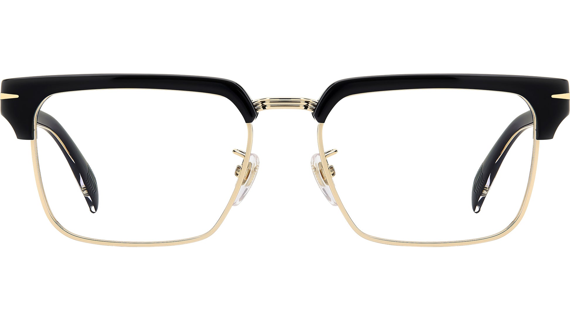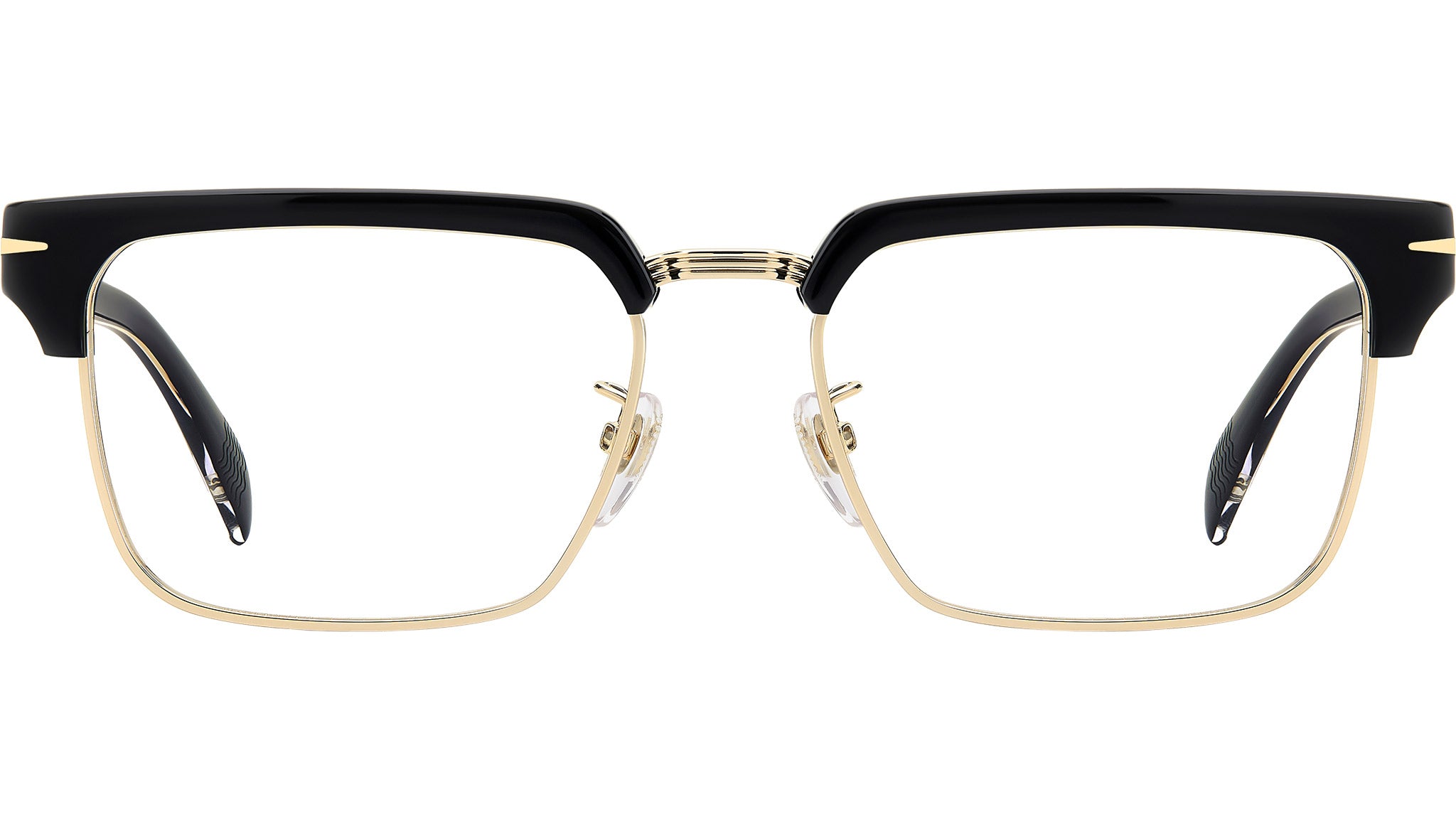 David Beckham DB 7112 2M2 glasses for men, featuring black gold browline metal frame and demo lens lenses. Brand line: Style Pioneer. Style code: 107373. Color code: 2M2. Authorized David Beckham online reseller. Your glasses will include the original case and accessories and are covered by a 12-month global warranty.