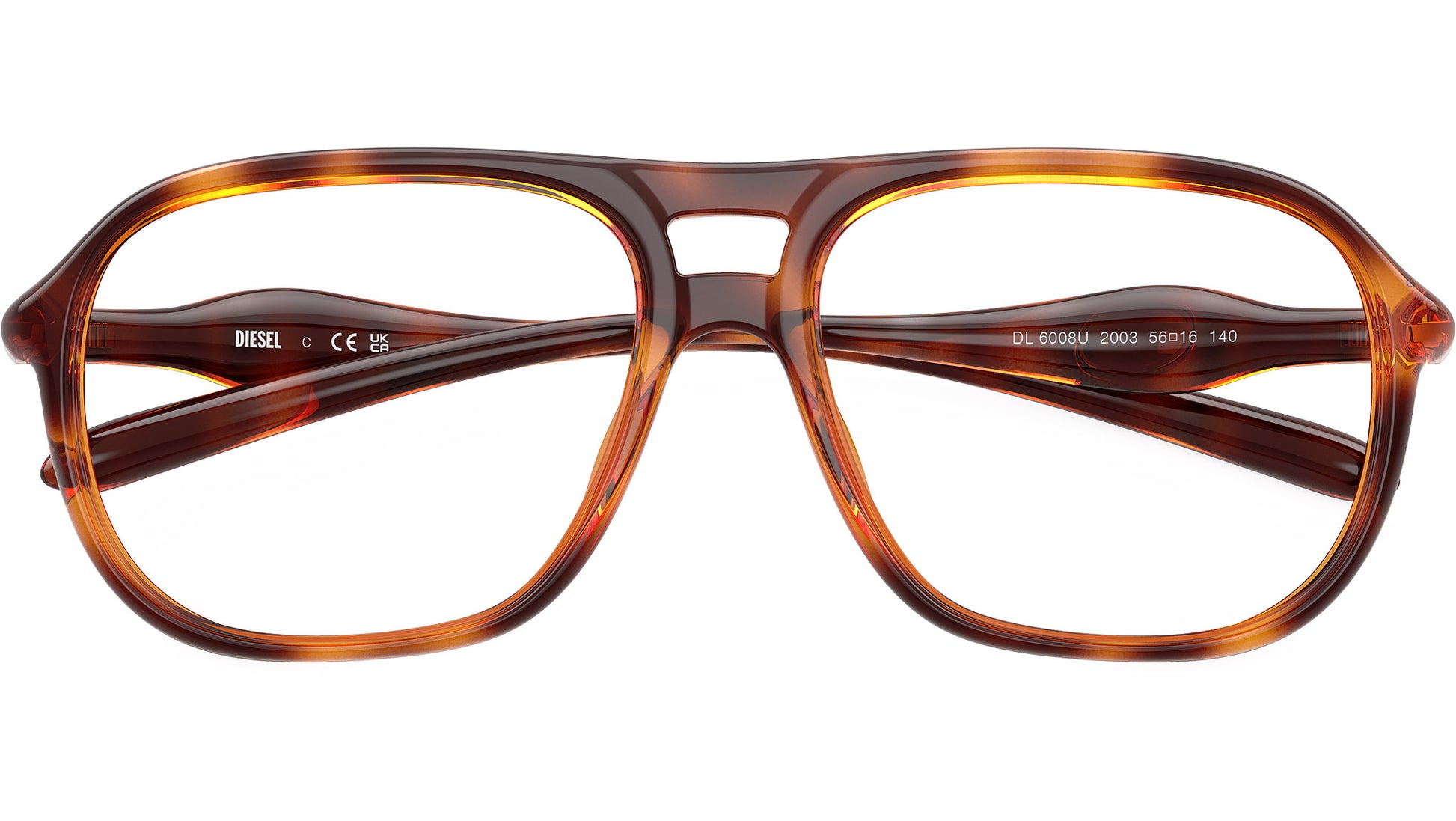 Diesel DL6008U 2003 glasses for men and woman, featuring havana oval injection frame and demo lens. Universal fit. Brand line: Core. Style code: 0DL6008U. Color code: 2003. Made in Italy. Authorized Diesel online reseller. Your glasses will include the original case and accessories and are covered by a 12-month global warranty.