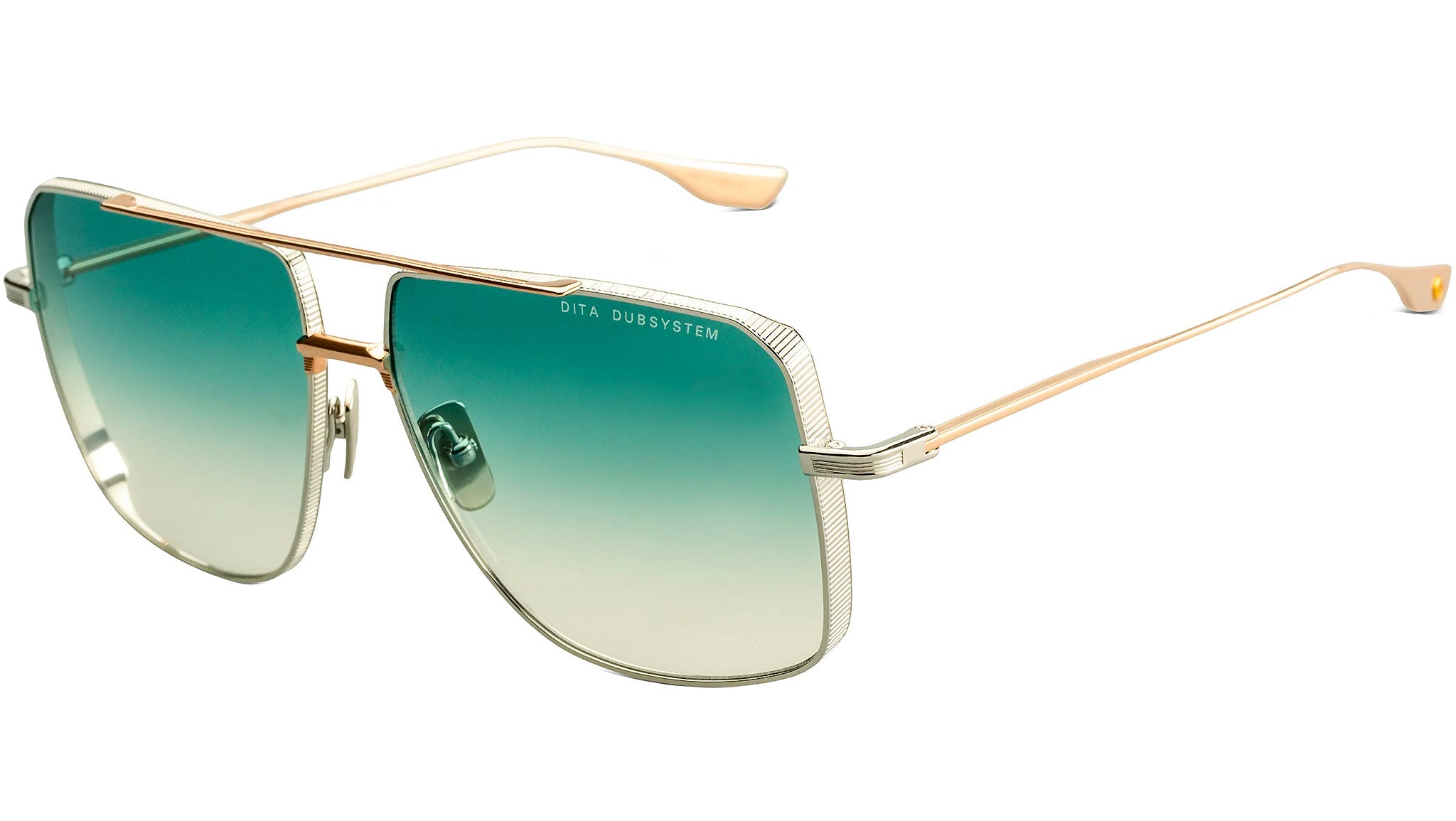 Drawing inspiration from Dita's philosophy of constant development, Dubsystem carries forward the legacy of its predecessor, the aviator-style Subsystem. Dubsystem enhances upon Subsystem by featuring a titanium navigator frame with intricate pressed line details on the lens rim and temples, resulting in an even more elaborate and finely-detailed design. With a variety of lens colors to choose from, including traditional G-15, as well as daring shades of dark burgundy and turquoise, Dubsystem exudes both confidence and refinement. Its blend of decorative elements and understated luxury make Dubsystem a perfect addition to any collection for those who value individualism. The oversized silhouette of Dubsystem is further accentuated by its meticulous design.