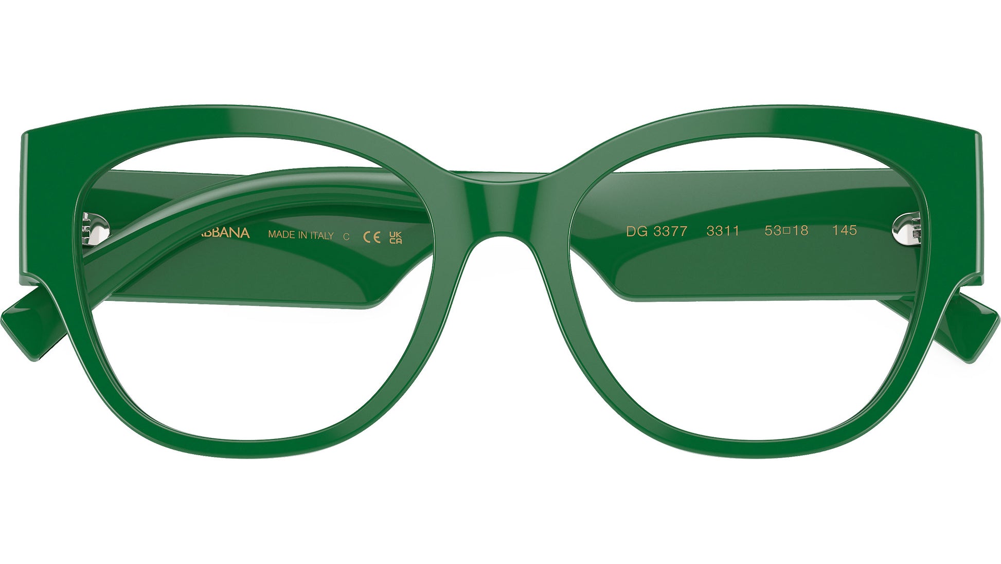 Dolce&Gabbana butterfly glasses model DG 3377 from Dna eyewear line, color code 3311 green acetate frame with green temple.