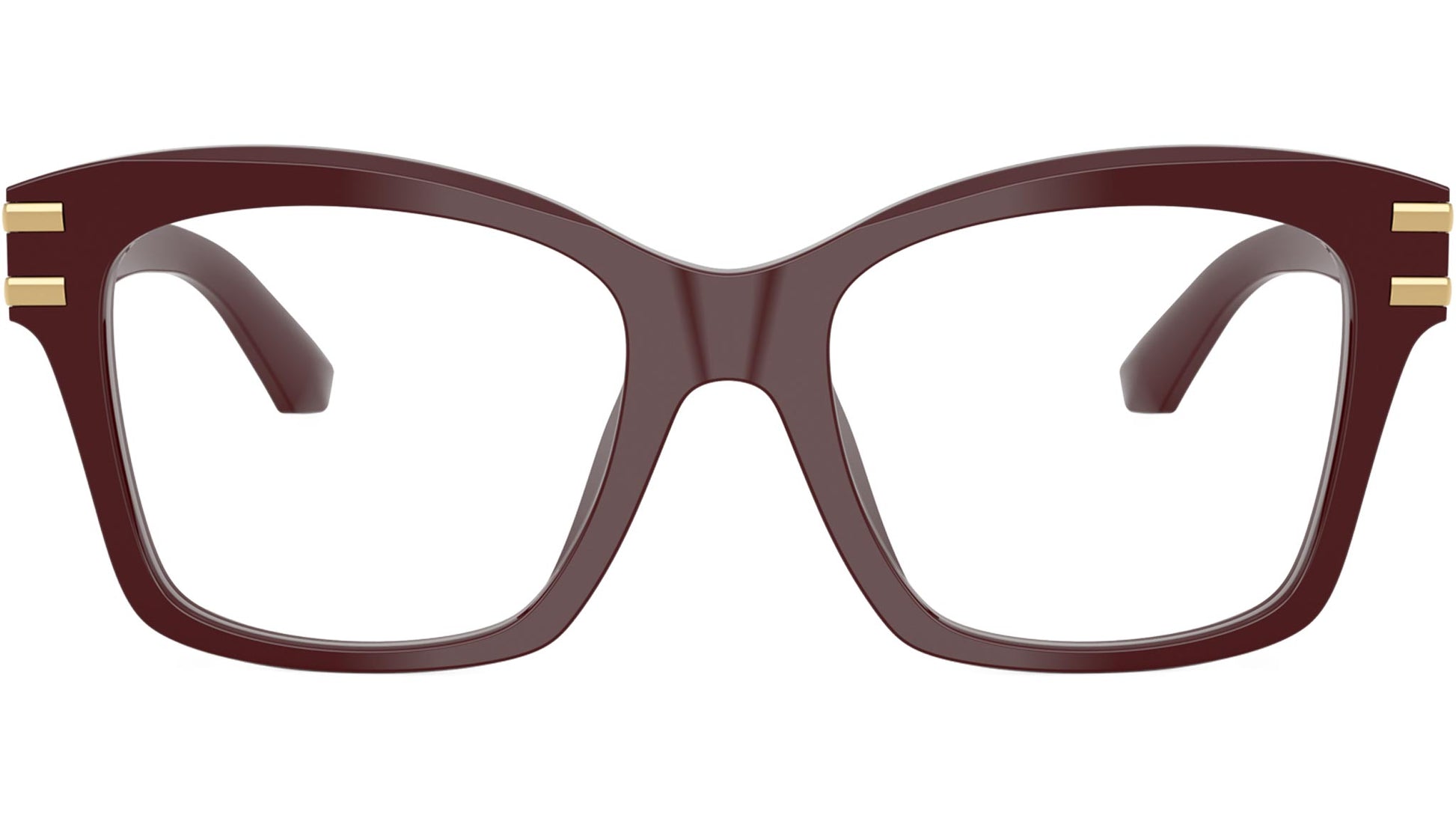 Dolce & Gabbana DG 3419 3091 glasses for women, featuring bordeaux squared acetate frame and demo lens. Universal fit. Brand line: Dna. Style code: 0DG3419. Color code: 3091. Made in Italy. Authorized Dolce & Gabbana online reseller. Your glasses will include the original case and accessories and are covered by a 12-month global warranty.