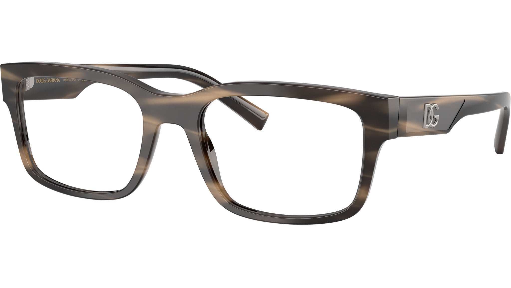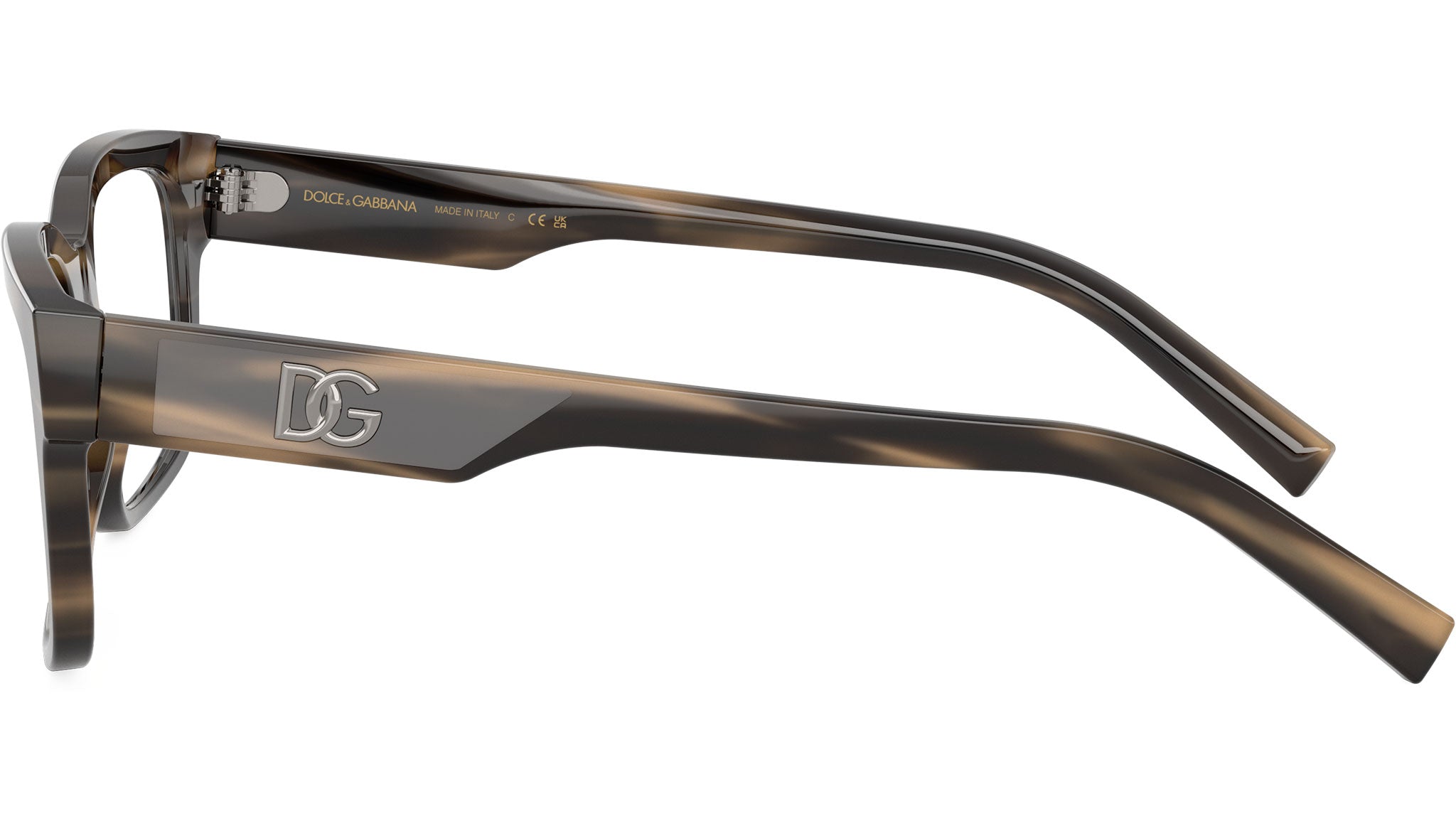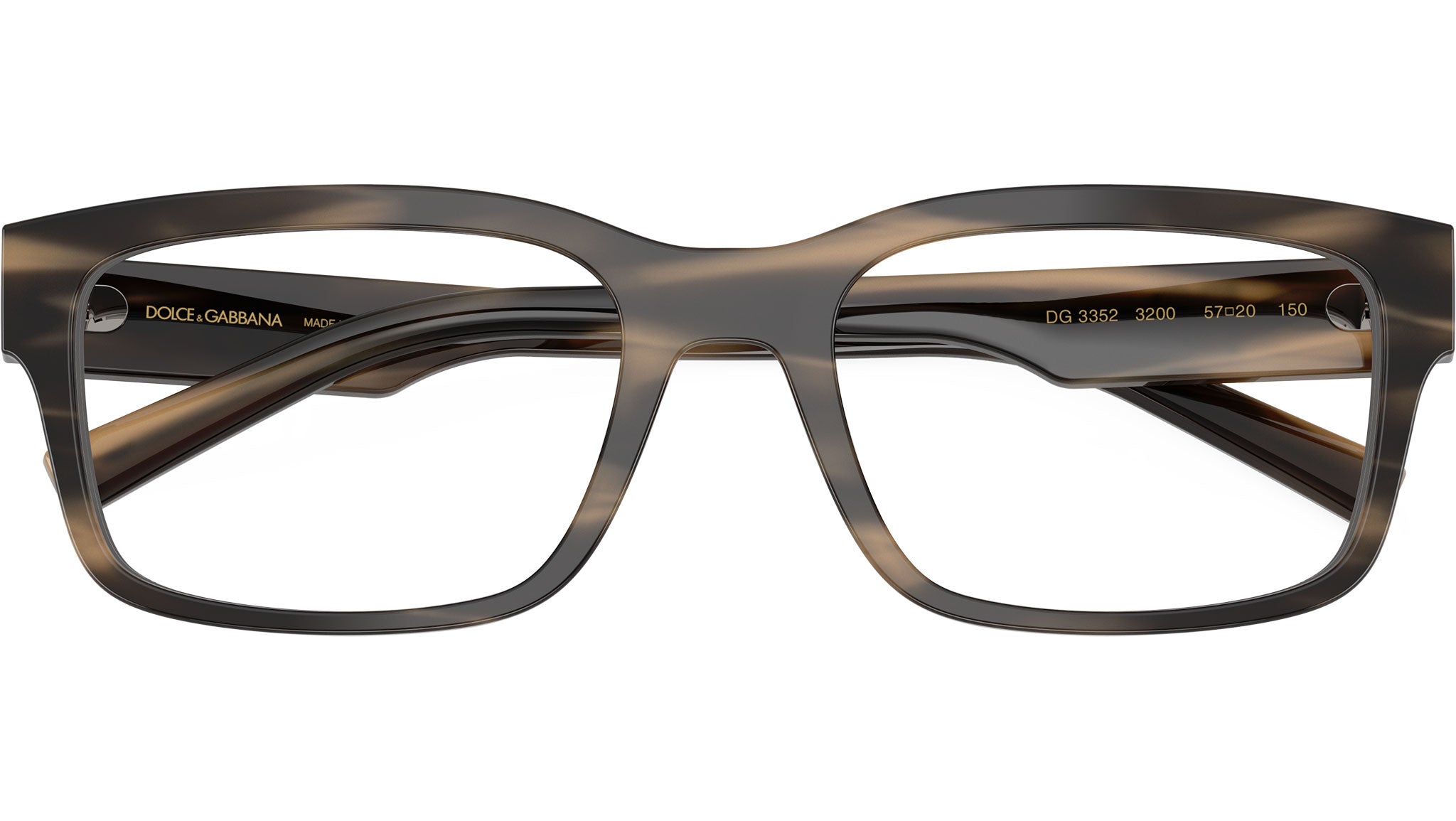 Dolce & Gabbana DG 3352 3200 glasses for men, featuring striped tobacco rectangular acetate frame and demo lens. High bridge fit. Brand line: Dna. Style code: 0DG3352. Color code: 3200. Made in Italy. Authorized Dolce & Gabbana online reseller. Your glasses will include the original case and accessories and are covered by a 12-month global warranty.