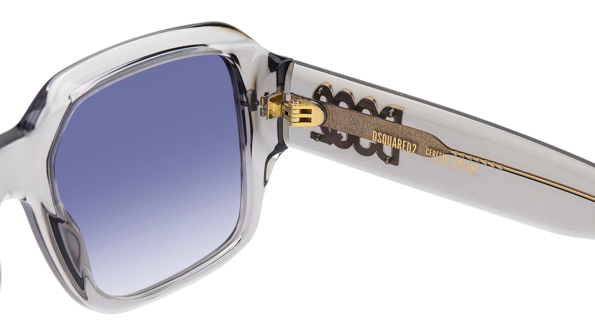 Dsquared2 sunglasses model D2 0106/S color code KB7 grey. Cool glamour is an essential component of these men's sunglasses and the entire DSQUARED2 universe. The acetate frames are bold, generous, multifaceted, and surprisingly lightweight. Details that identify the brand make these glasses legendary: the metal rivets on the front, the raised DSQ2 maxi logo, the CERESIO 9, MILANO reference on the inside of the temples, and the maple leaf on the end tips. Authorised Dsquared2 Online Reseller. Your glasses will come including the original case and accessories and will be covered by 12 month global warranty.
