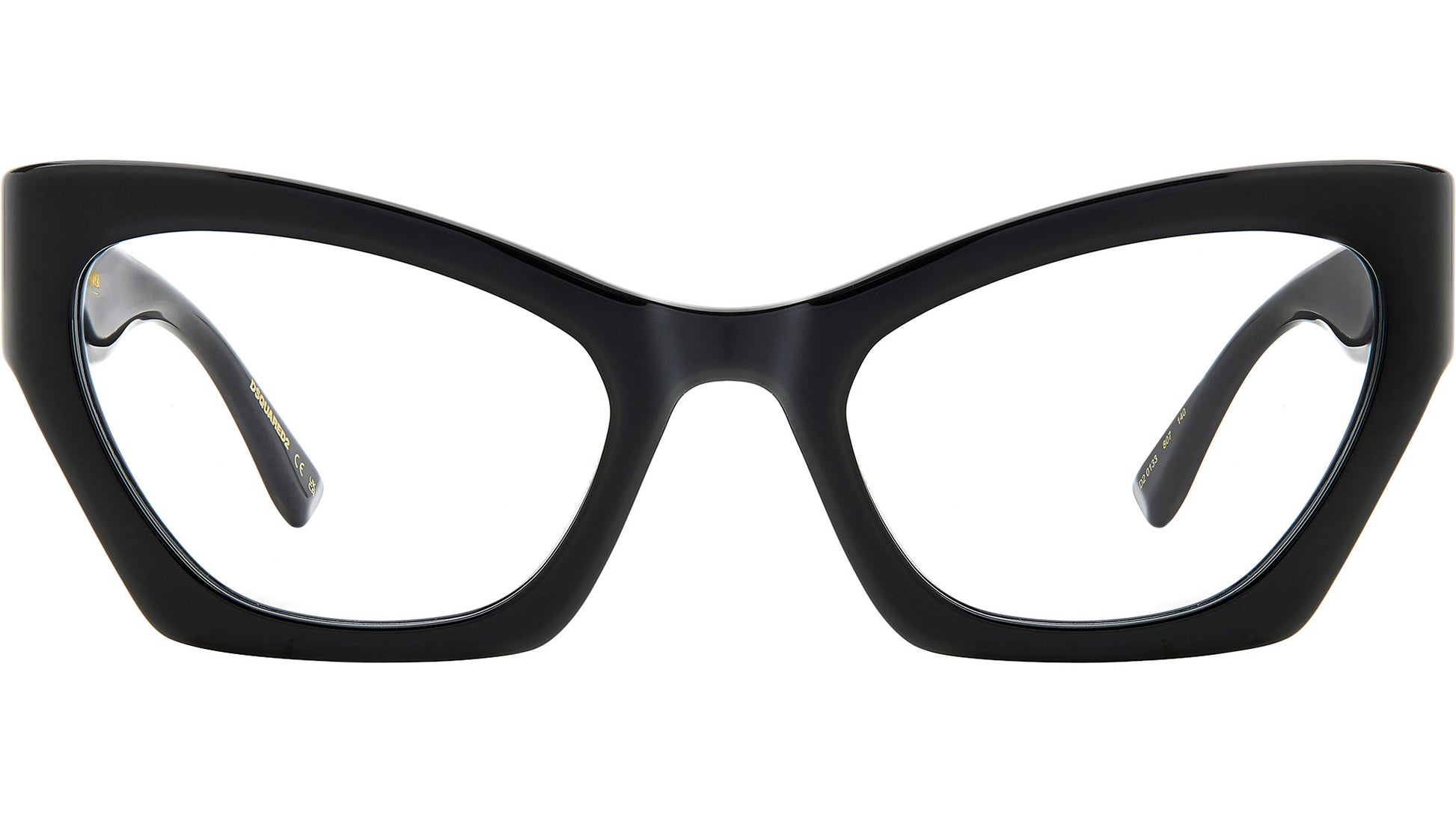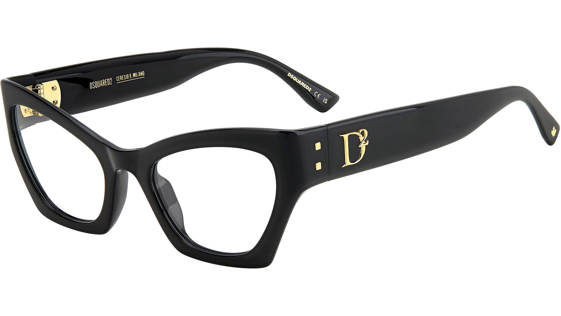 Dsquared2 optical frame model D2 0133 color code 807 black. Everyday outfits will ooze iconic femininity thanks to these women’s eyeglasses by DSQUARED2. They're an accessory designed to stand out thanks to the acetate structure, maxi proportions and cat-eye shape, fashioning a look worthy of true divas. The temples are trimmed by a raised D2 logo in metal, accompanied by the brand's square rivets, the maple leaf on the end tips, and the CERESIO 9, MILANO inscription on the inside. The result is unforgettable, sure to make an impression. Authorised Dsquared2 Online Reseller. Your glasses will come including the original case and accessories and will be covered by 12 month global warranty.