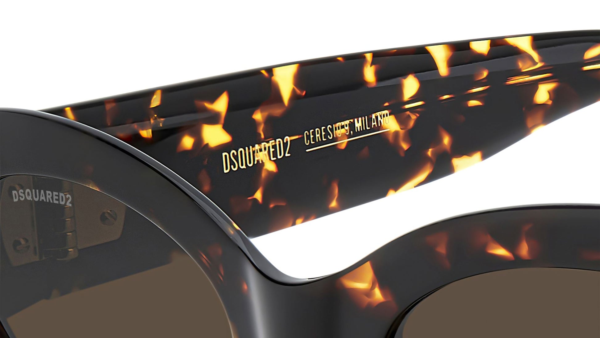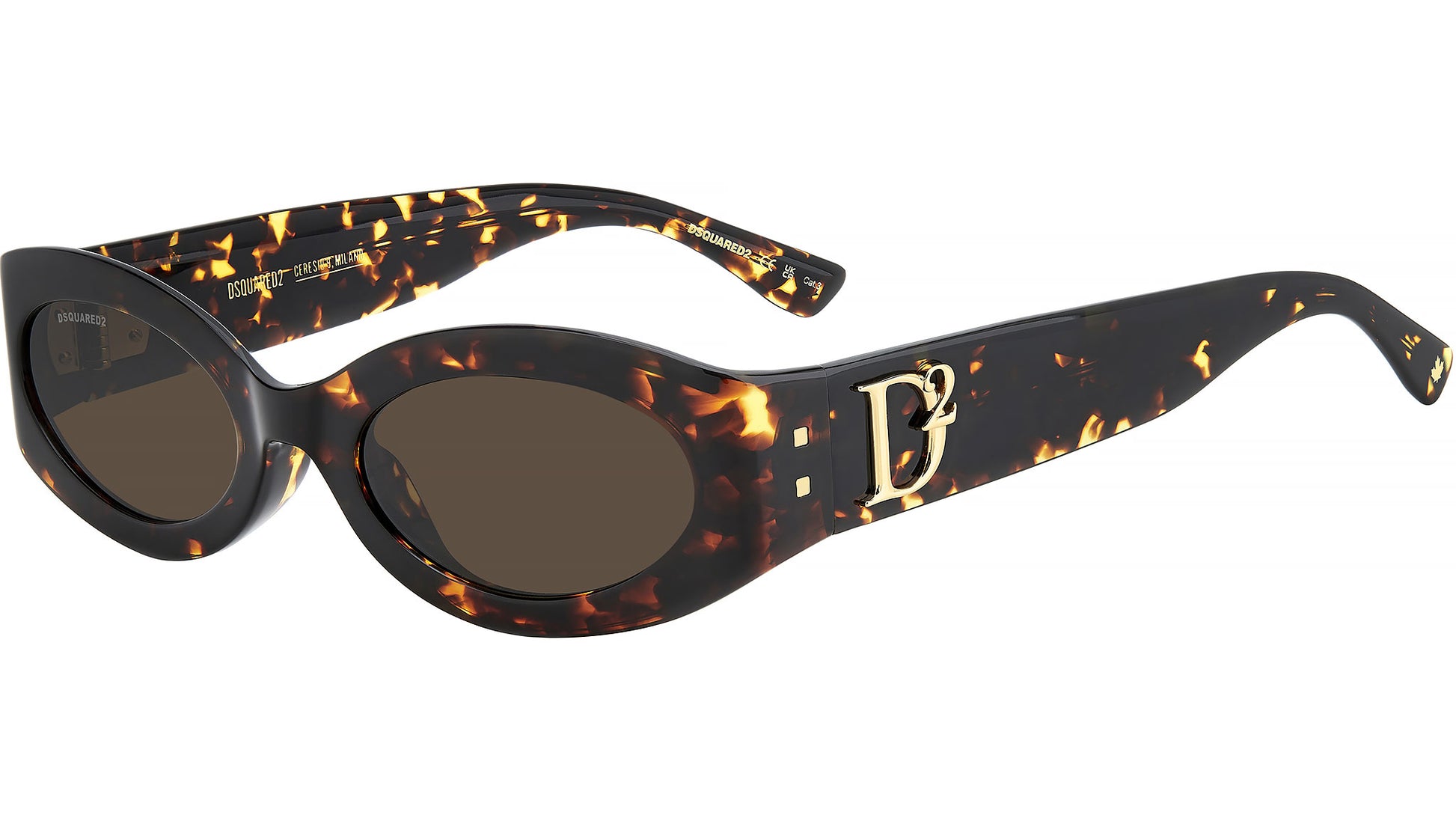 Dsquared2 D2 0150/G/S 086 70 sunglasses for women, featuring havana oval acetate frame and brown lenses. Impeccable in their construction, these Dsquared2 women's sunglasses embody youthful style. Their beauty is in their details, like the front which is crafted into an angle, to connect to the temples. The acetate structure has been bevelled around the lenses for lightweight practicality. The temples are voluminous but stable thanks to the robust rivet screws. With an oversize D2 logo in relief on the sides, these glasses come in classic and seasonal hues. Brand line: Hype. Style code: 207431. Color code: 086 70. Authorized Dsquared2 online reseller. Your glasses will include the original case and accessories and are covered by a 12-month global warranty.