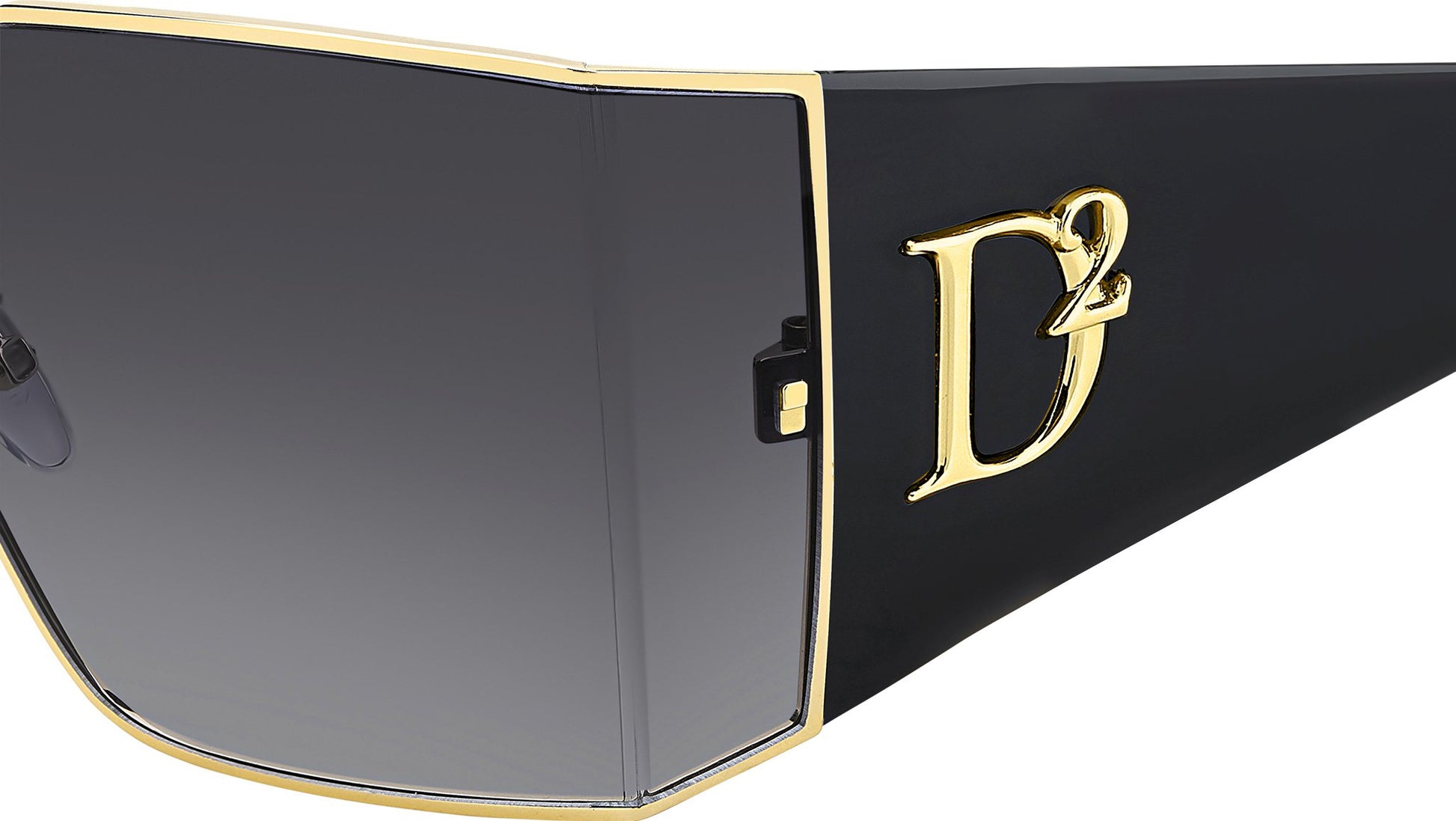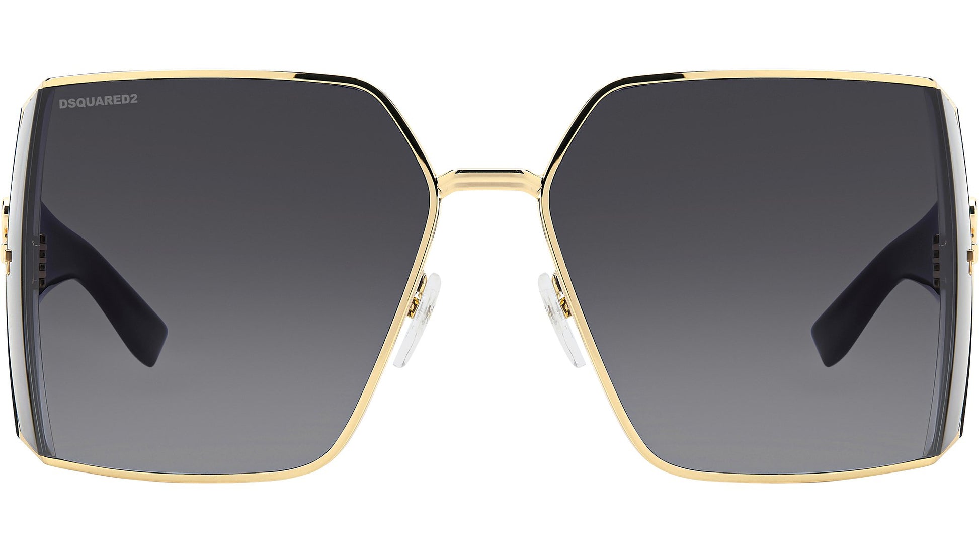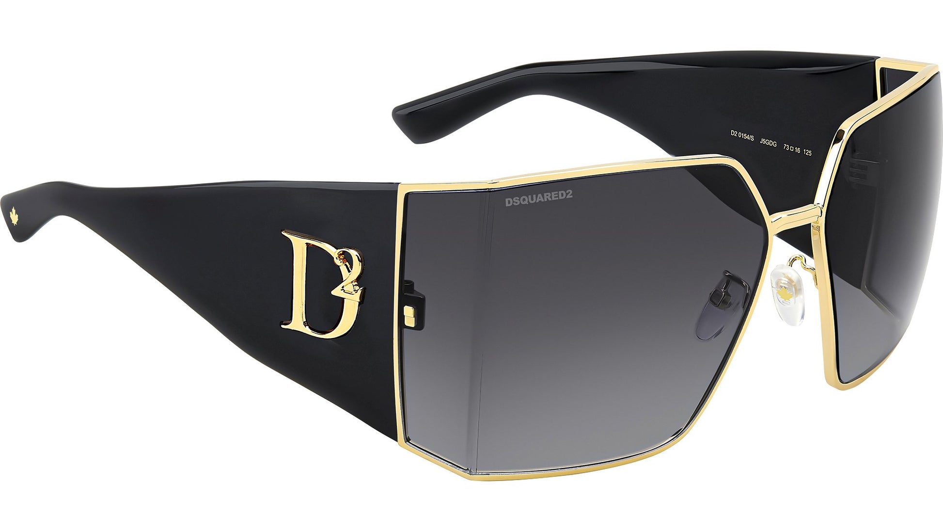 Dsquared2 D2 0154/S 000 9O sunglasses for women, featuring rose gold squared metal frame and dark grey shaded lenses. These sunglasses are already a collector's item, one of the most sophisticated women's eyewear looks from Dsquared2 this season. The meticulous construction of the metal front is their signature, crafted into an angle at the sides to hold the wrap-around maxi lenses, trimmed by the iconic rivets. The nose pads are customised by the brand's maple leaf, also found on the end tips. The oversize D2 logo in relief trims this unique pair of glasses. Brand line: Hype. Style code: 207654. Color code: 000 9O. Authorized Dsquared2 online reseller. Your glasses will include the original case and accessories and are covered by a 12-month global warranty.