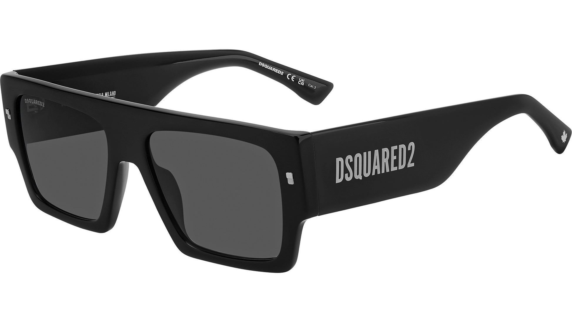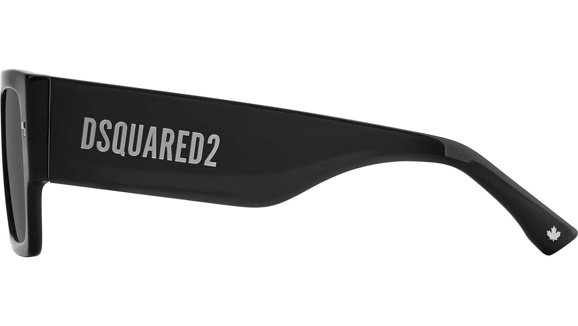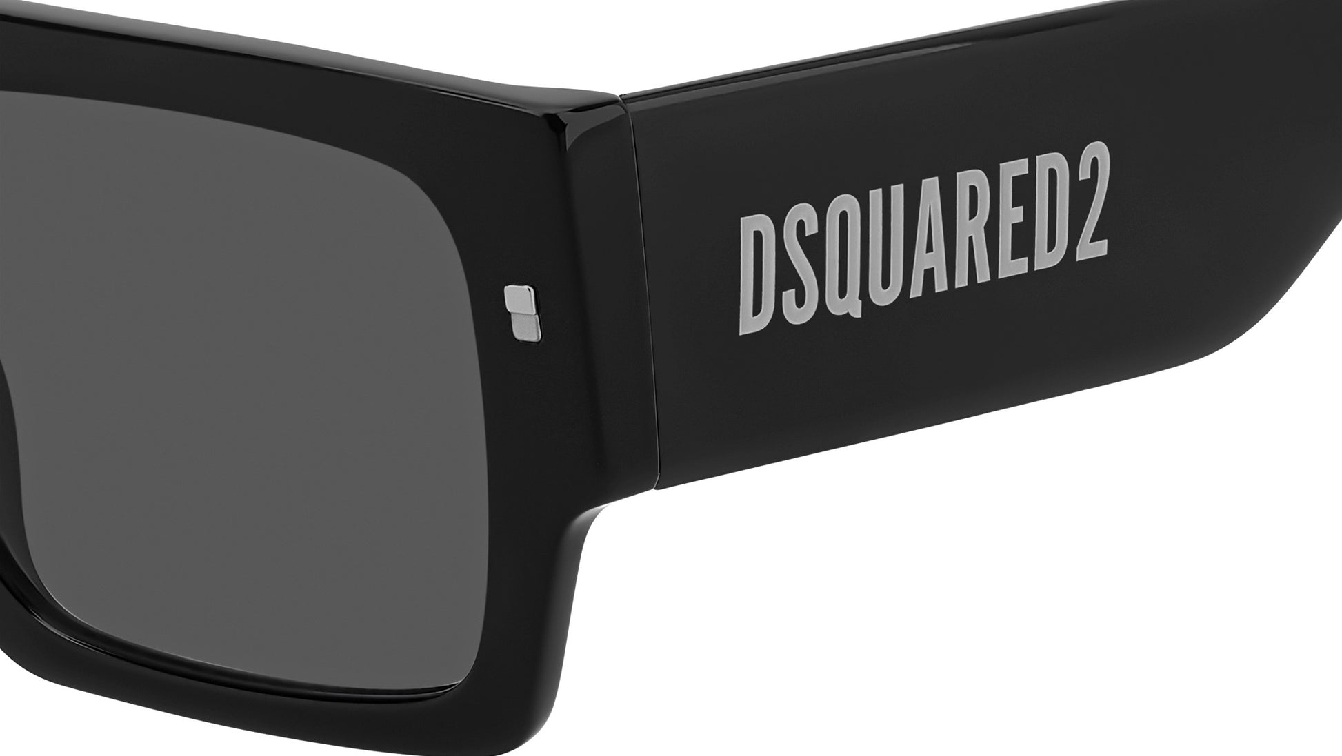 Dsquared2 D2 0165/S 807 IR sunglasses for men, featuring black rectangular acetate frame and grey lenses. The bold look of Dsquared2 is expressed in these men’s sunglasses. The acetate front entices with its notable volumes and proportions, yet it remains lightweight thanks to bevelling on the inside. The frames can even be fitted with prescription sun lenses. The temples are bold and oversize, with a maxi Dsquared2 logo – a symbol of the brazen glamour which the brand is known for. The square rivets and the maple leaf on the end tips complete this must-have look. Brand line: Hype. Style code: 207903. Color code: 807 IR. Authorized Dsquared2 online reseller. Your glasses will include the original case and accessories and are covered by a 12-month global warranty.