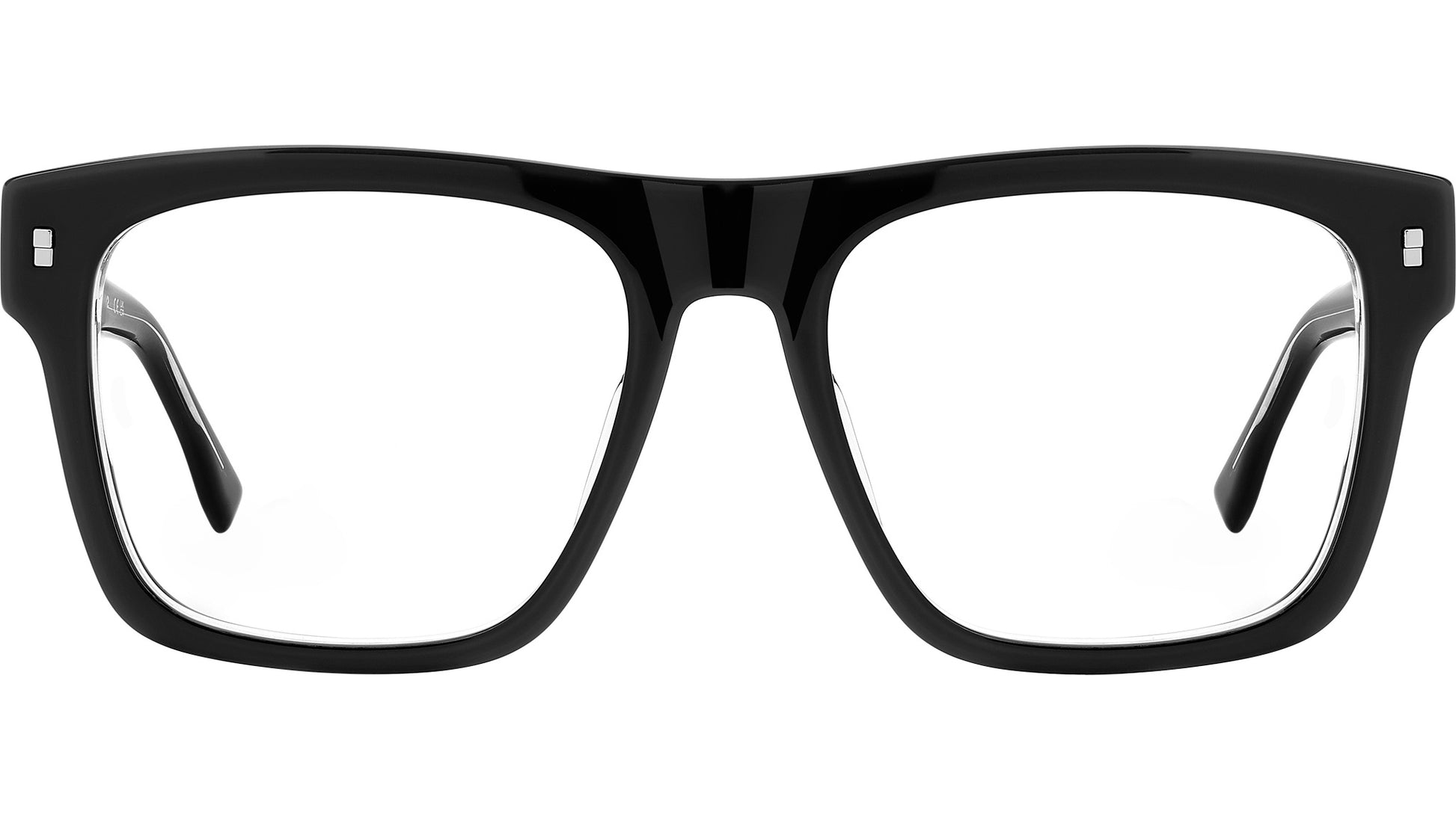 Dsquared2 optical frame model ICON 0018 color code 7C5 black crystal. The DSQUARED2 man has well-defined character, perfectly expressed by these square optical glasses, decisive silhouettes and a chromatic range that goes from all black to playful colour combinations and transparencies. The raised metal ICON logo, with all its unrestrained force, is accompanied by trim on the front and the brand's maple leaf on the end tips. A clean, masculine look with plenty of visual impact. Available in two lens sizes. Authorised Dsquared2 Online Reseller. Your glasses will come including the original case and accessories and will be covered by 12 month global warranty.