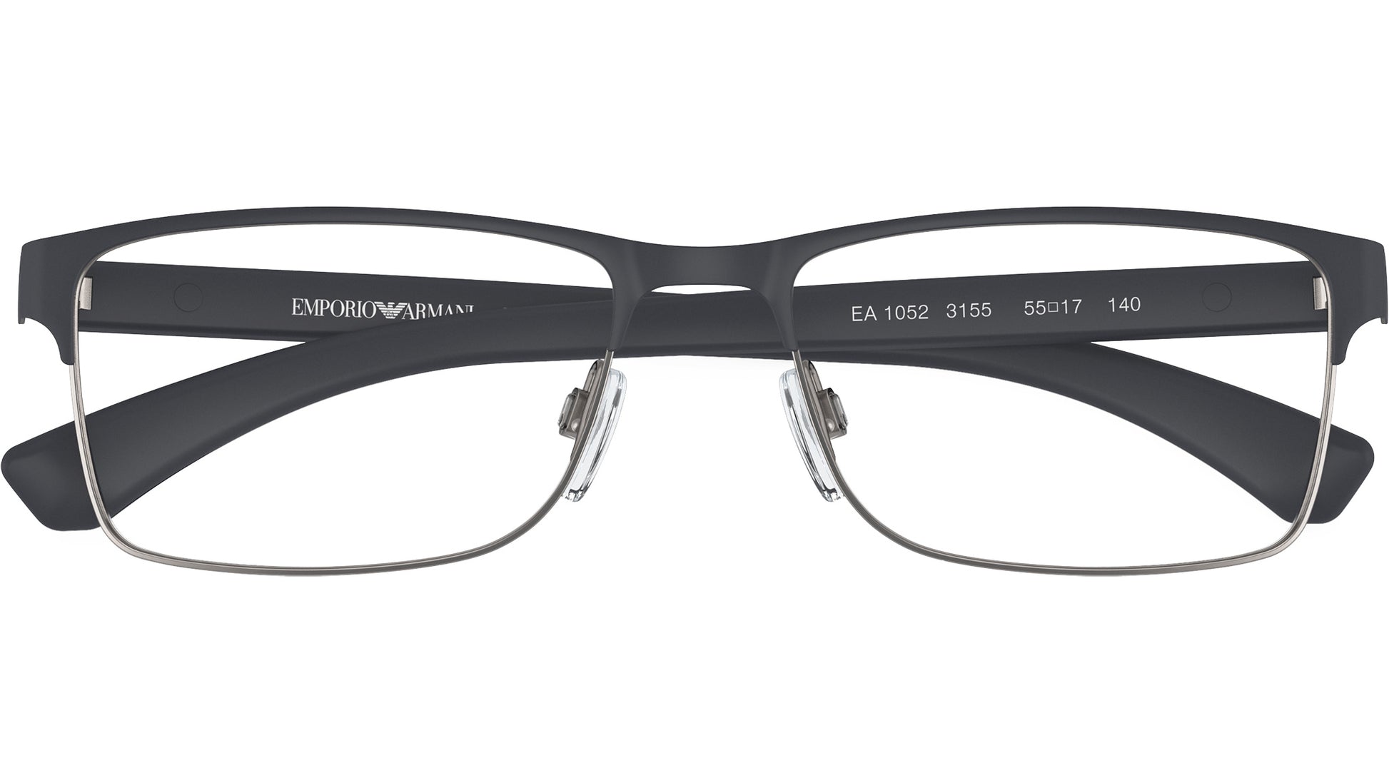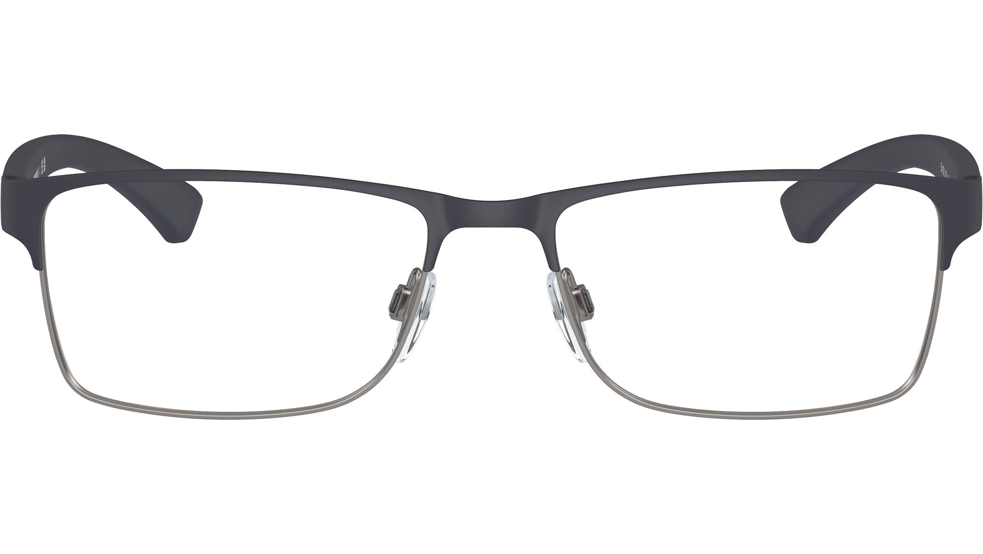 Emporio Armani eyeglasses for men model EA1052 featuring rubber blue & gunmetal full rim metal frame and base 4 curve demo lens. Adjustable Nosepads. Frame line: Runway. Brand code: EA1052. Color code: 3155. Authorised Emporio Armani Online Reseller. Your glasses will come including the original case and accessories and will be covered by 12 month global warranty.