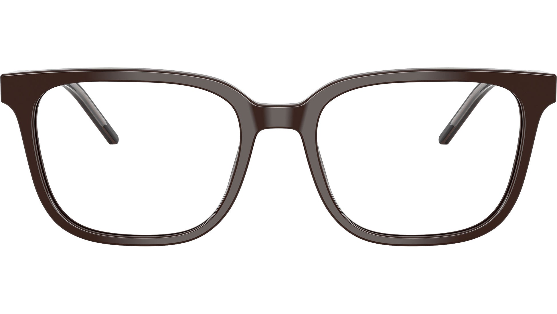 Emporio Armani EA 3258 6255 glasses, featuring shiny brown squared acetate frame and demo lenses. High bridge fit. Brand line: Essential Leisure. Style code: 0EA3258. Color code: 6255. Authorized Emporio Armani online reseller. Your glasses will include the original case and accessories and are covered by a 12-month global warranty.