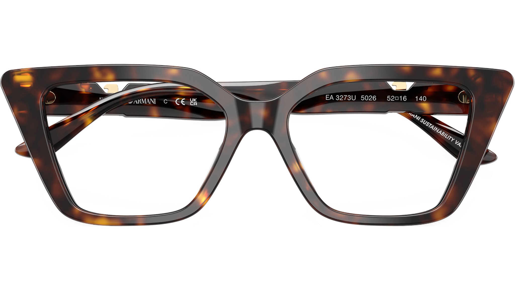 Emporio Armani EA3273U 5026 glasses, featuring shiny havana cat eye acetate frame and demo lenses. Universal fit. Brand line: Modern. Style code: 0EA3273U. Color code: 5026. Authorized Emporio Armani online reseller. Your glasses will include the original case and accessories and are covered by a 12-month global warranty.
