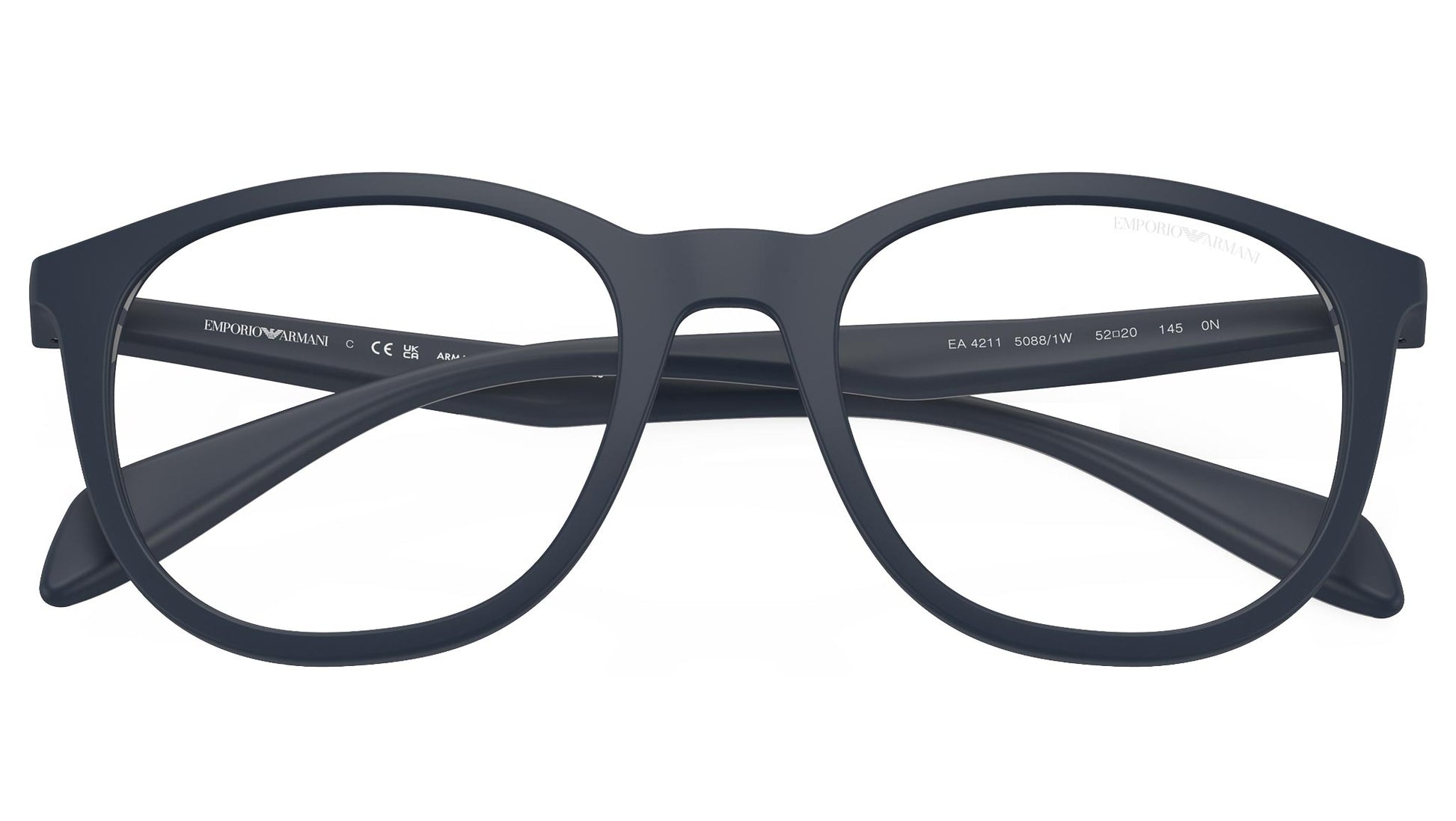 Emporio Armani sunglasses for men model EA4211 featuring matte blue full rim injection frame and base 4 curve clear lens. High Bridge Fit. Frame line: Runway. Brand code: EA4211. Color code: 50881W. Authorised Emporio Armani Online Reseller. Your glasses will come including the original case and accessories and will be covered by 12 month global warranty.