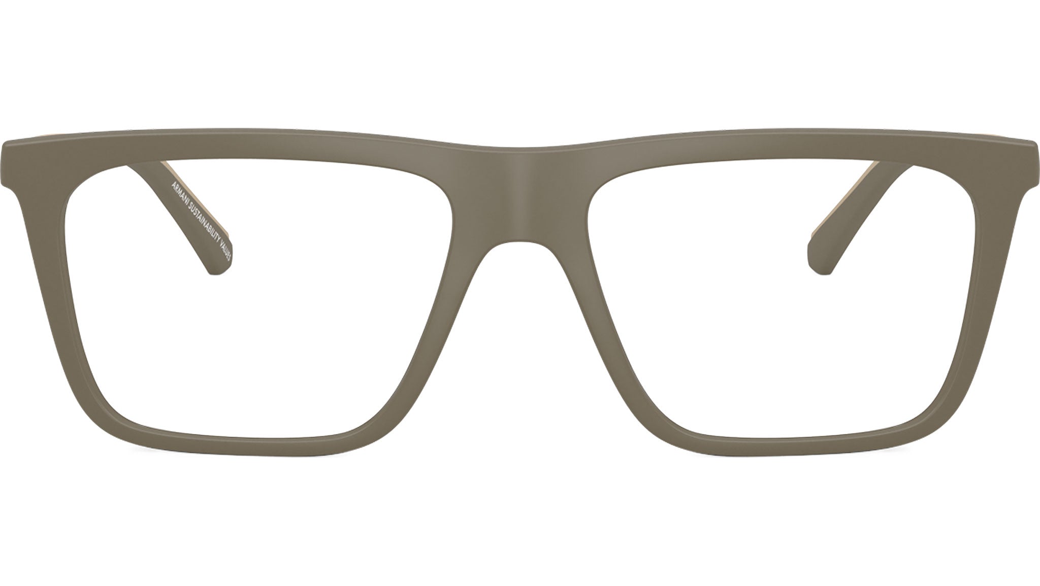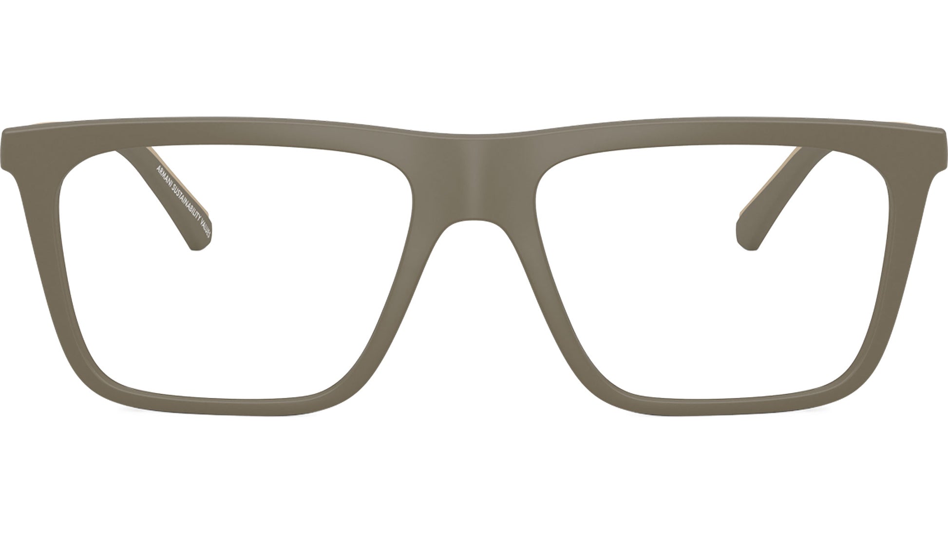 Emporio Armani EA4258 54371W sunglasses, featuring matte beige squared injection frame and clear bio polyamide lenses. High bridge fit. Brand line: Essential Leisure. Style code: 0EA4258. Color code: 54371W. Authorized Emporio Armani online reseller. Your glasses will include the original case and accessories and are covered by a 12-month global warranty.