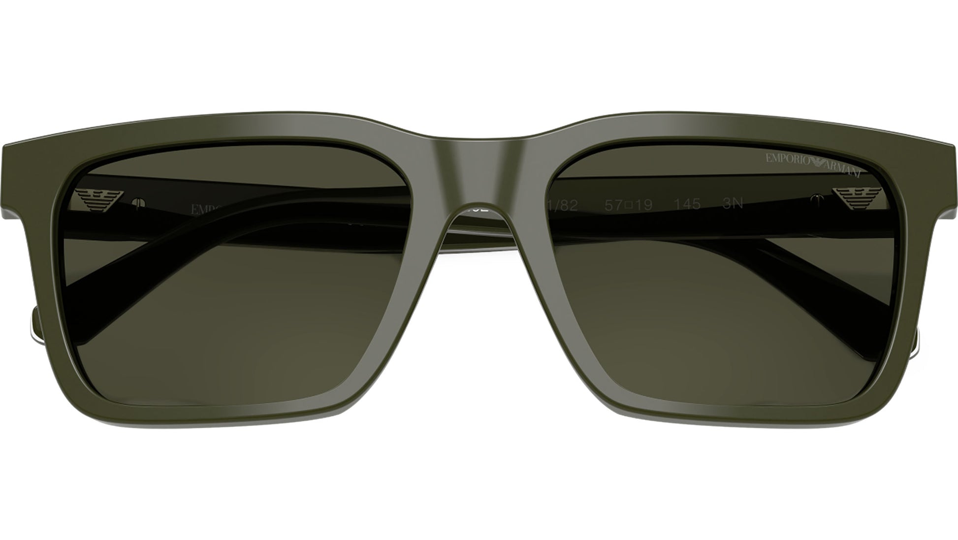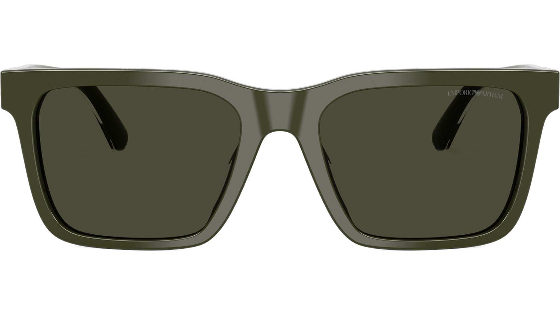 Emporio Armani EA4262U 632182 sunglasses, featuring shiny green squared acetate frame and green bio polyamide lenses. Universal fit. Brand line: Essential Leisure. Style code: 0EA4262U. Color code: 632182. Authorized Emporio Armani online reseller. Your glasses will include the original case and accessories and are covered by a 12-month global warranty.