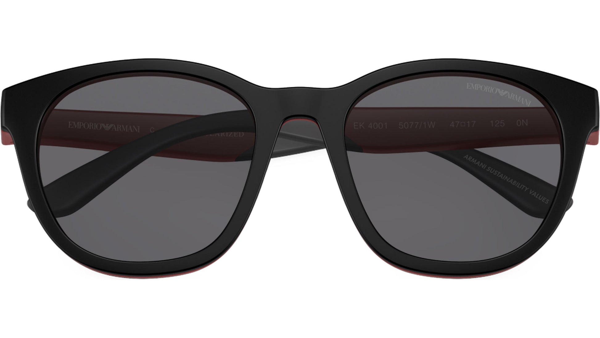 Emporio Armani Kids EK4001 50771W sunglasses, featuring matte red panthos injection frame and clear bio polyamide lenses. High bridge fit. Brand line: Essential Leisure. Style code: 0EK4001. Color code: 50771W. Authorized Emporio Armani Kids online reseller. Your glasses will include the original case and accessories and are covered by a 12-month global warranty.