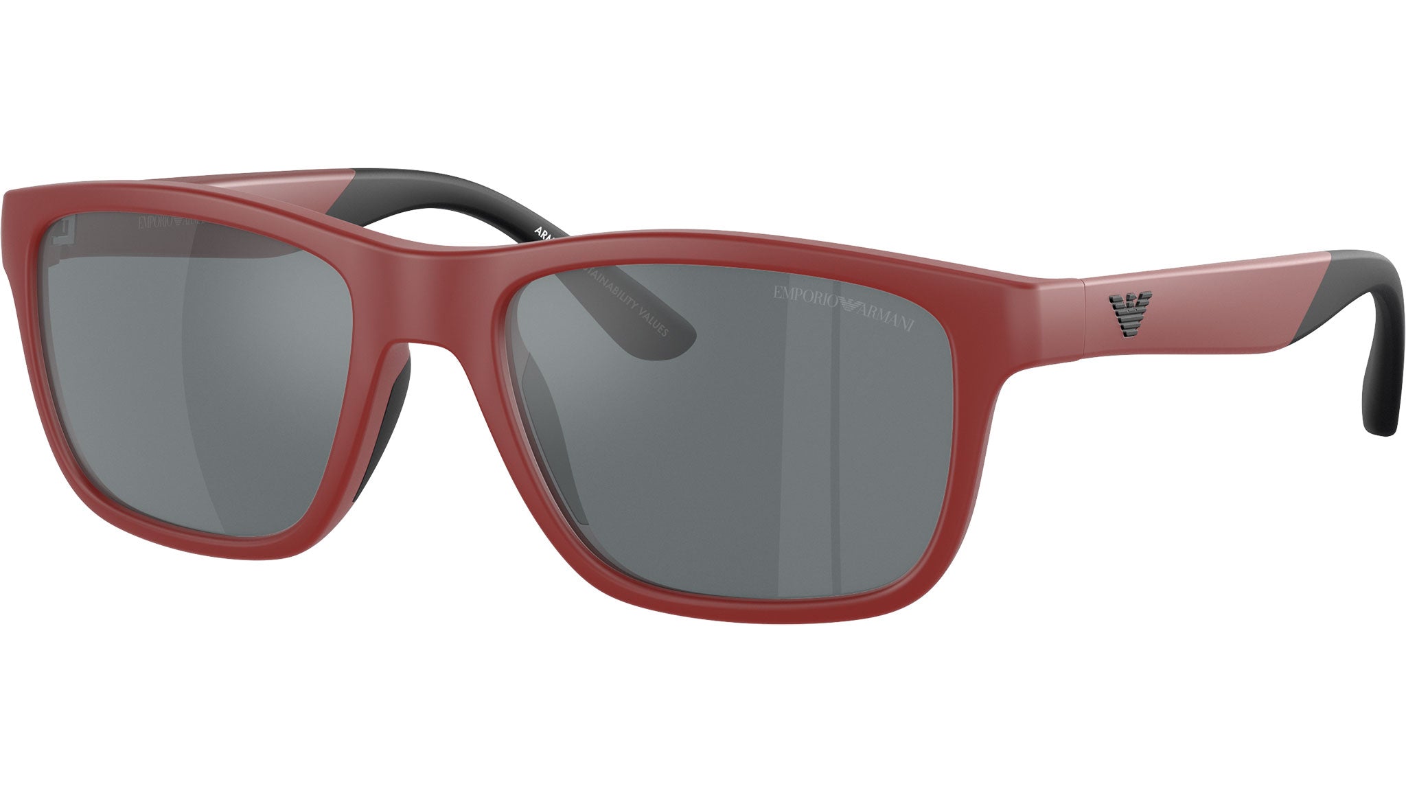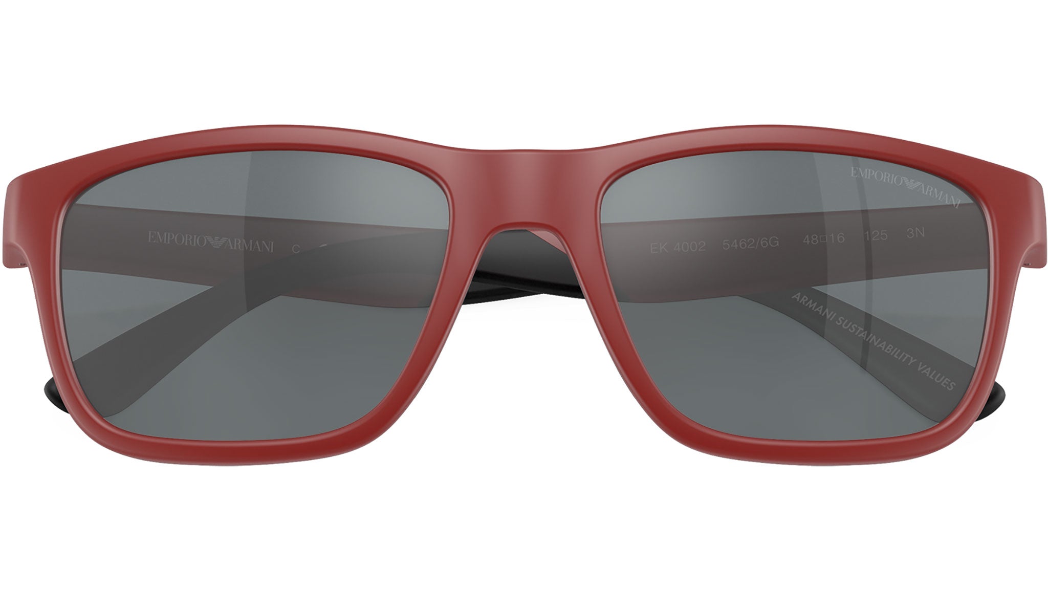 Emporio Armani Kids EK4002 54626G sunglasses, featuring matte red d-frame injection frame and grey mirror black bio polyamide lenses. High bridge fit. Brand line: Essential Leisure. Style code: 0EK4002. Color code: 54626G. Authorized Emporio Armani Kids online reseller. Your glasses will include the original case and accessories and are covered by a 12-month global warranty.