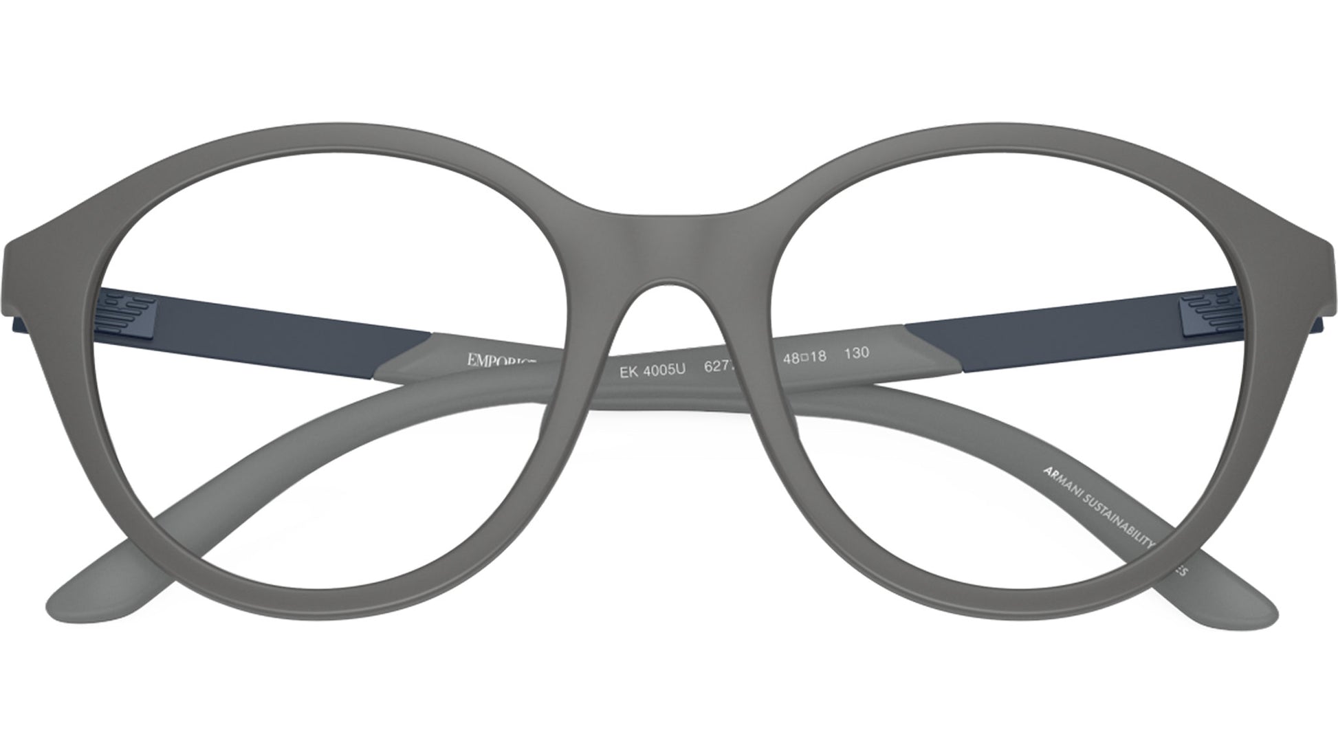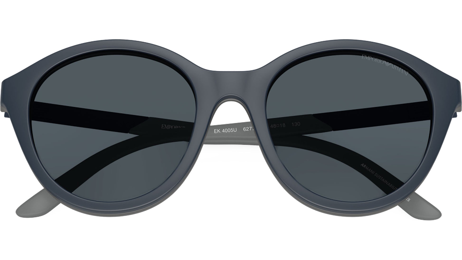Emporio Armani Kids EK4005U 62771W sunglasses, featuring matte grey round injection frame and clear bio polyamide lenses. Adjustable nosepads. Brand line: Essential Leisure. Style code: 0EK4005U. Color code: 62771W. Authorized Emporio Armani Kids online reseller. Your glasses will include the original case and accessories and are covered by a 12-month global warranty.