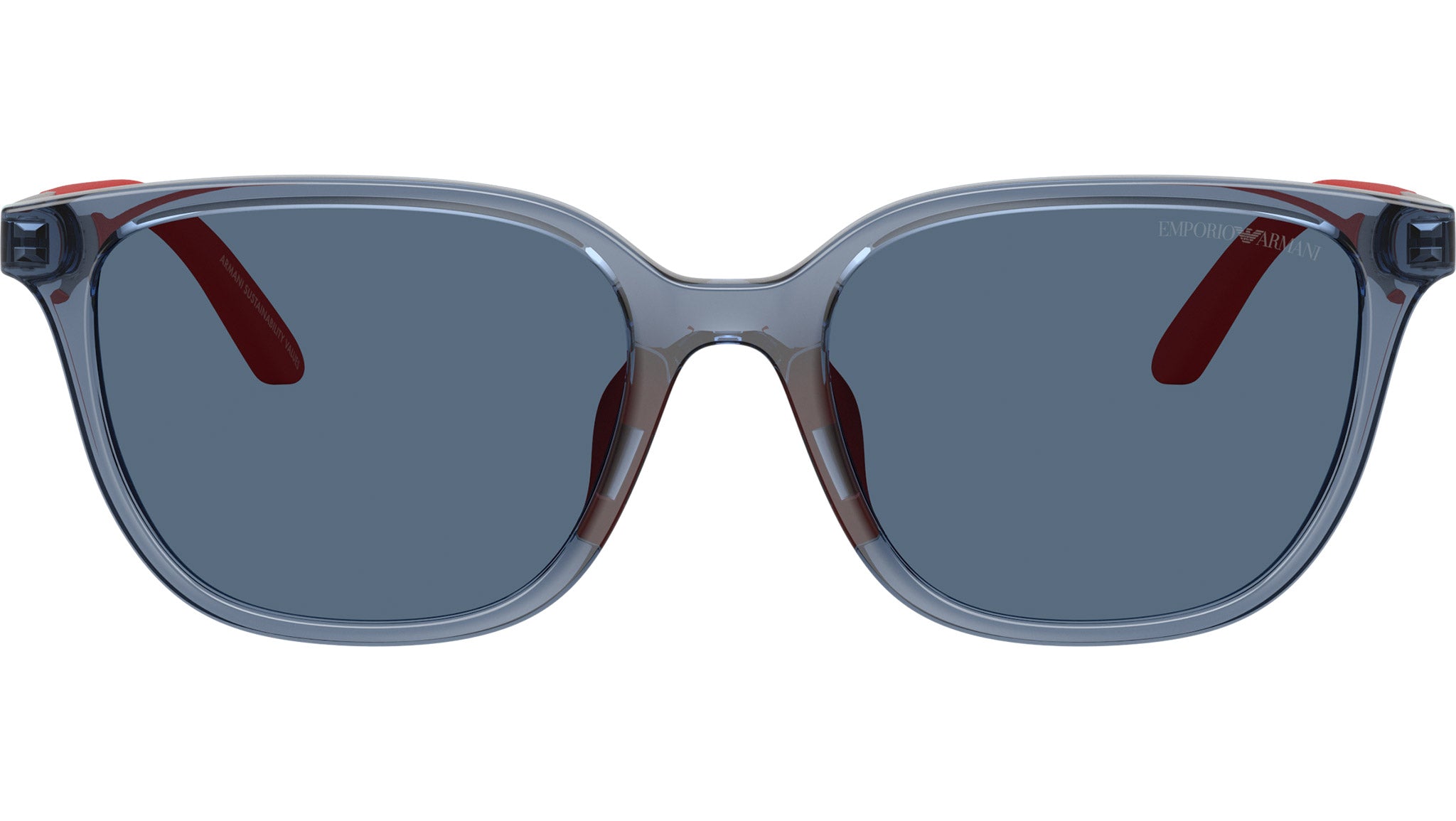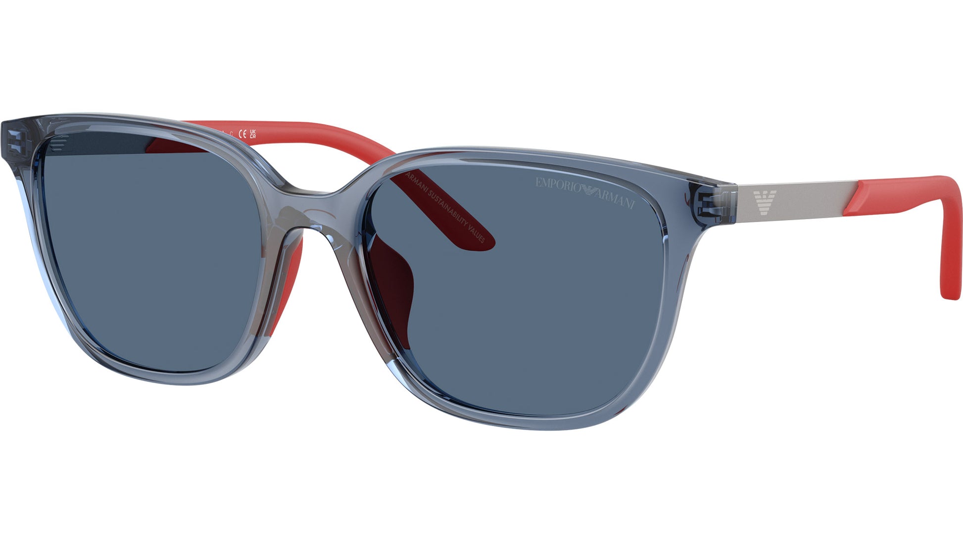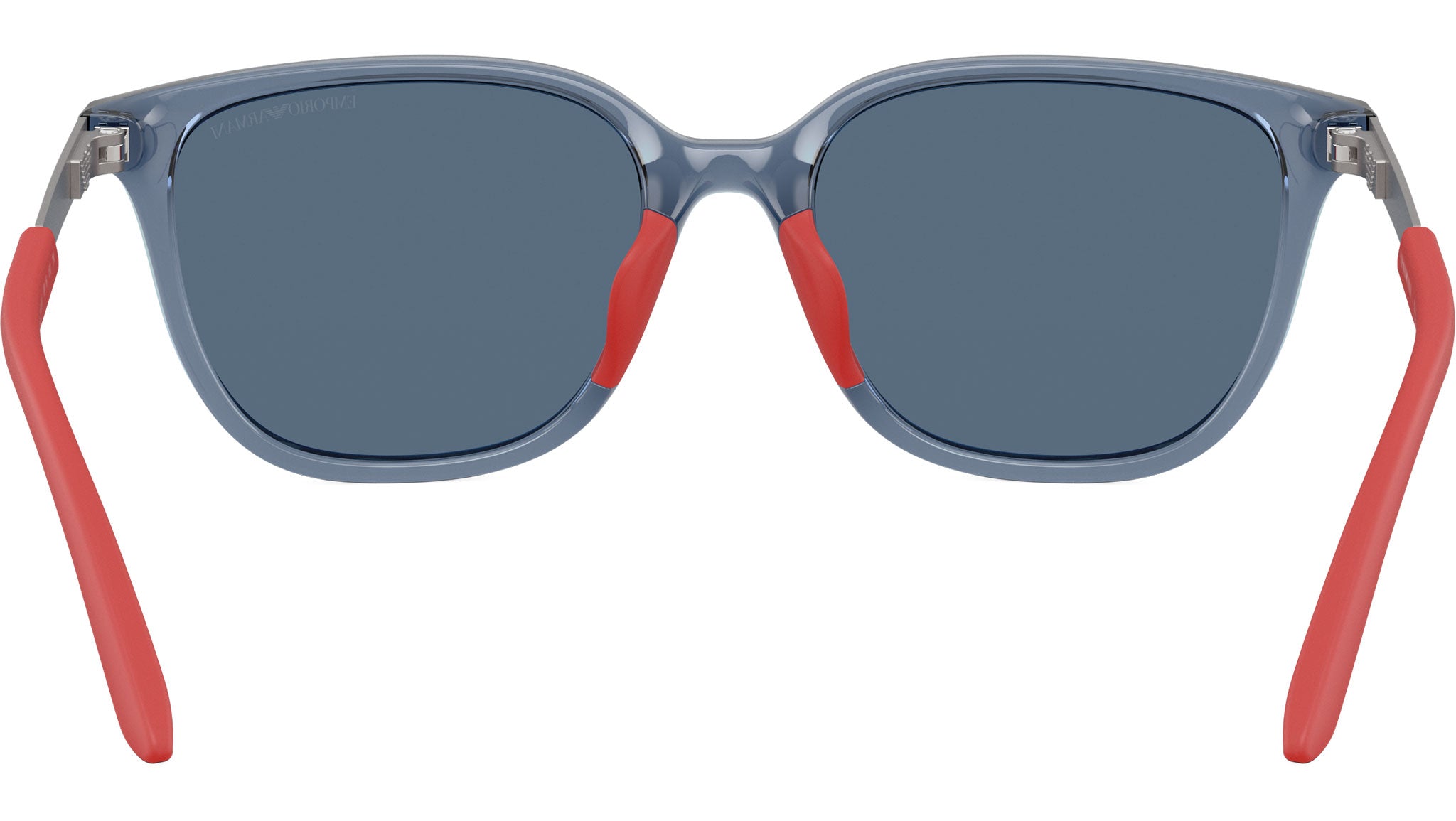 Emporio Armani Kids EK4006U 627880 sunglasses, featuring transparent blue d-frame injection frame and dark blue bio polyamide lenses. Adjustable nosepads. Brand line: Essential Leisure. Style code: 0EK4006U. Color code: 627880. Authorized Emporio Armani Kids online reseller. Your glasses will include the original case and accessories and are covered by a 12-month global warranty.