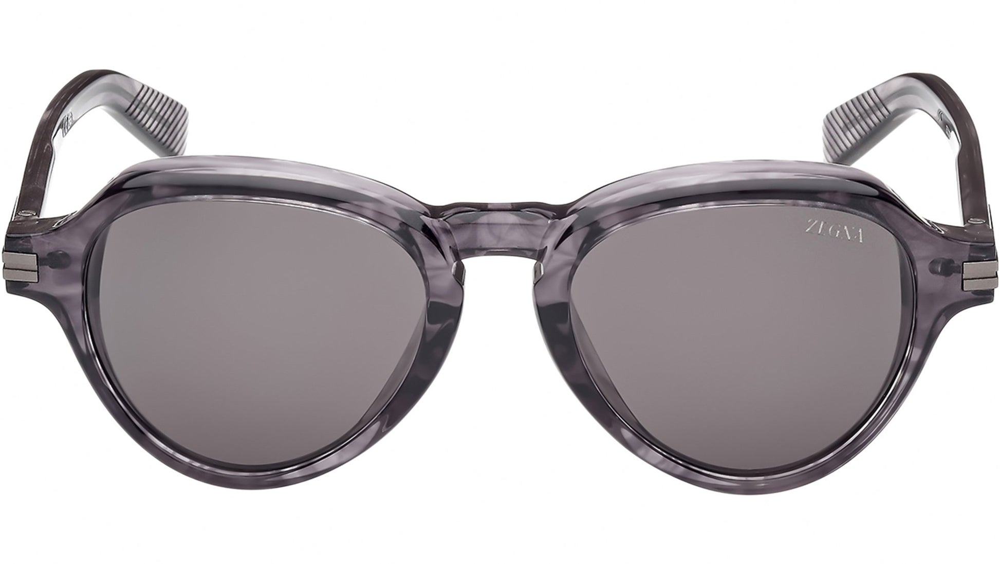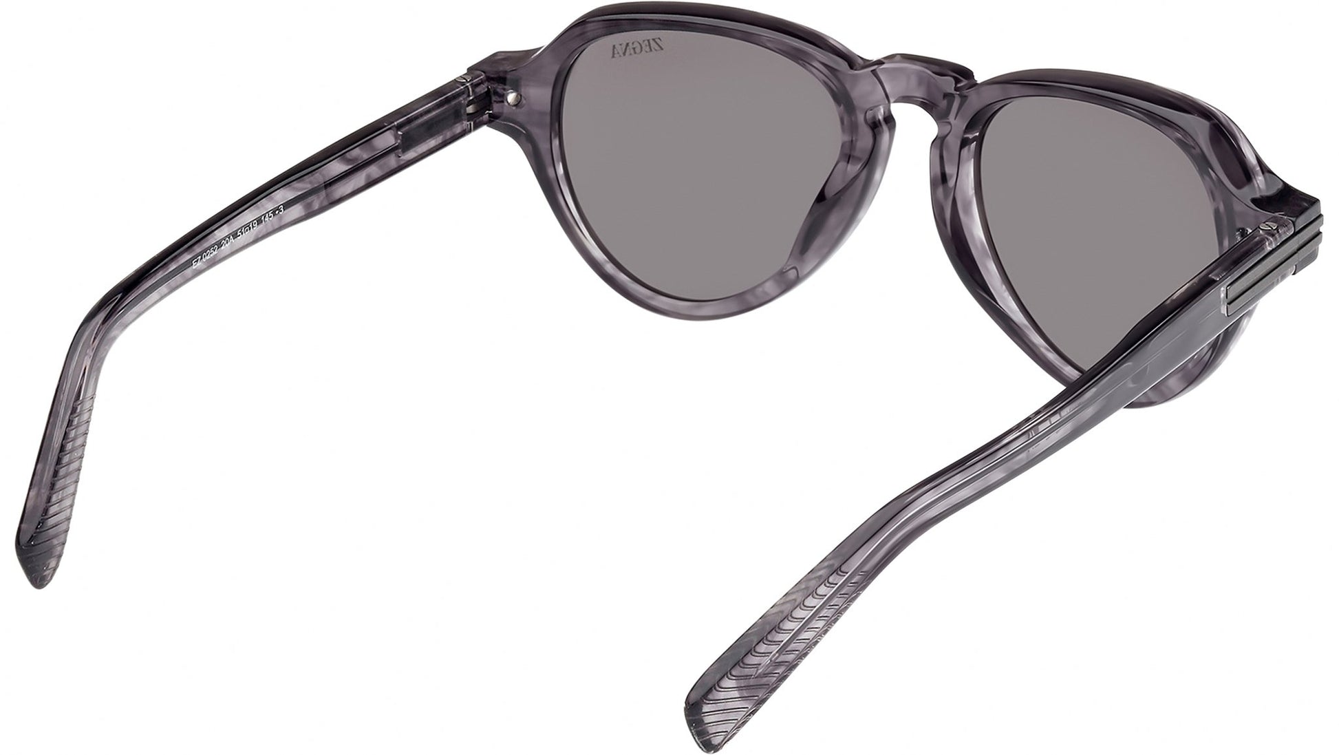 Zegna sunglasses for men model EZ0252 featuring grey / striped full-rim acetate frame and grey lenses. Brand code: EZ0252. Color code: 20A. Authorised Ermenegildo Zegna Online Reseller. Your glasses will include the original case and accessories and will be covered by a 12-month global warranty.