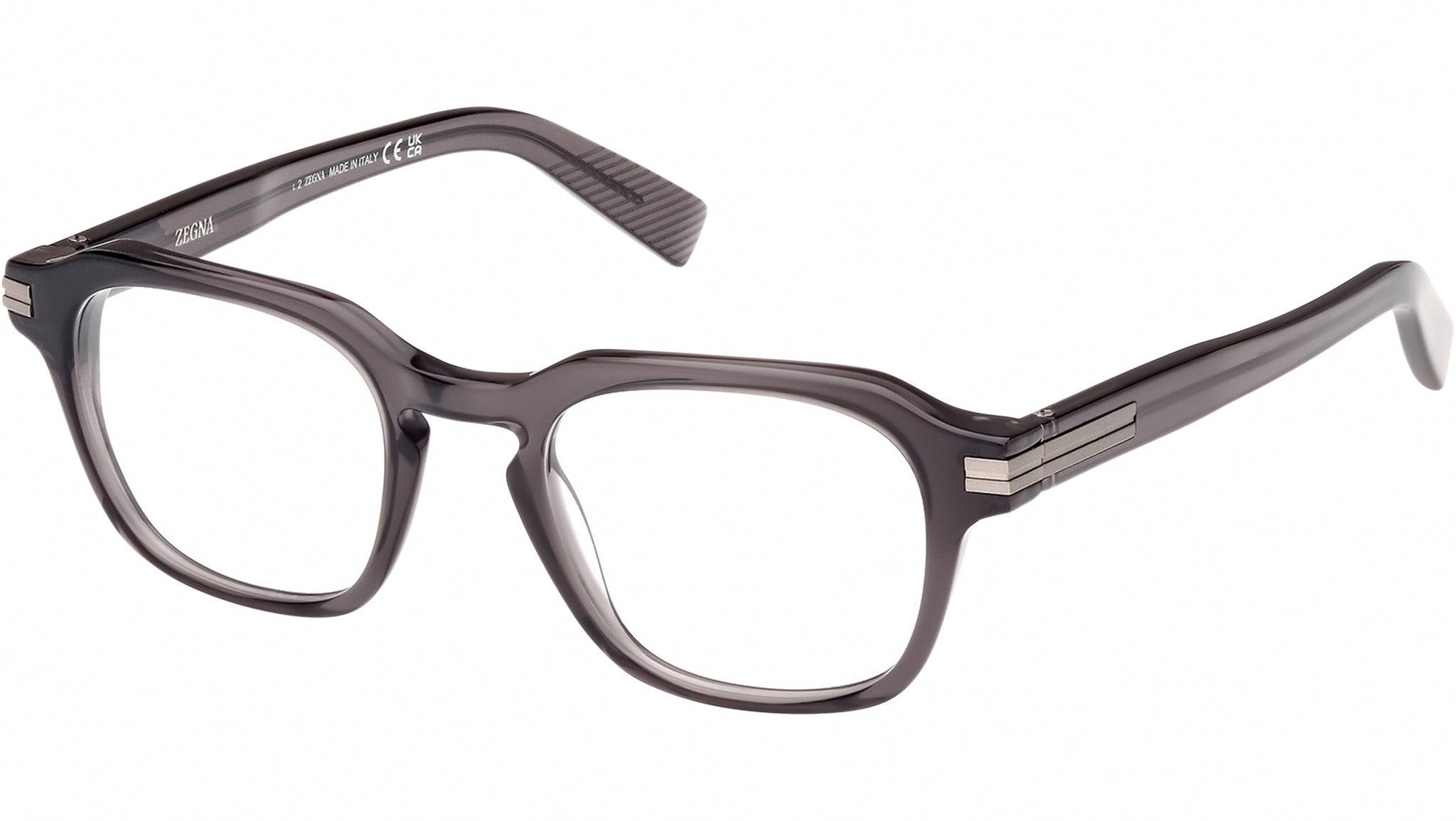 Zegna glasses for men model EZ5282 featuring shiny grey full-rim acetate frame with transparent demo lenses. Brand code: EZ5282. Color code: 020. Authorised Ermenegildo Zegna Eyewear Online Reseller. Your glasses will include the original case and accessories and will be covered by a 12-month global warranty.