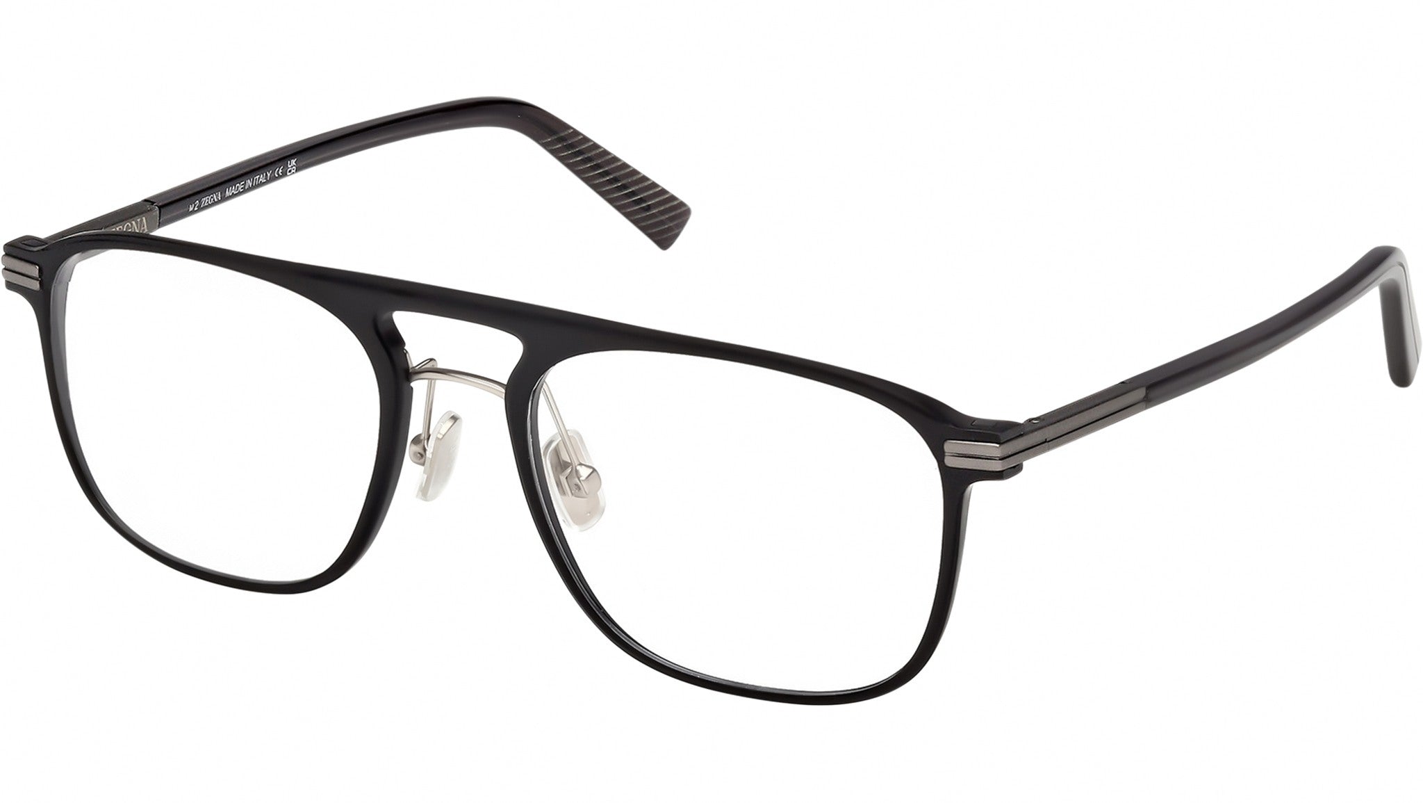 Zegna glasses for men model EZ5308 featuring matte black full-rim magnesium frame with transparent demo lenses. Brand code: EZ5308. Color code: 002. Authorised Ermenegildo Zegna Eyewear Online Reseller. Your glasses will include the original case and accessories and will be covered by a 12-month global warranty.