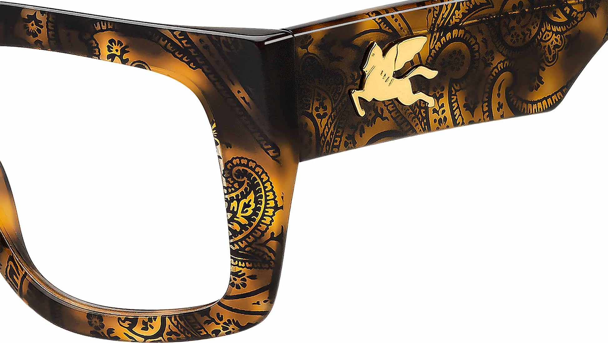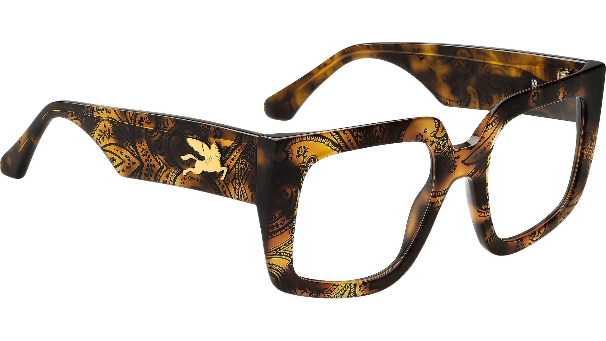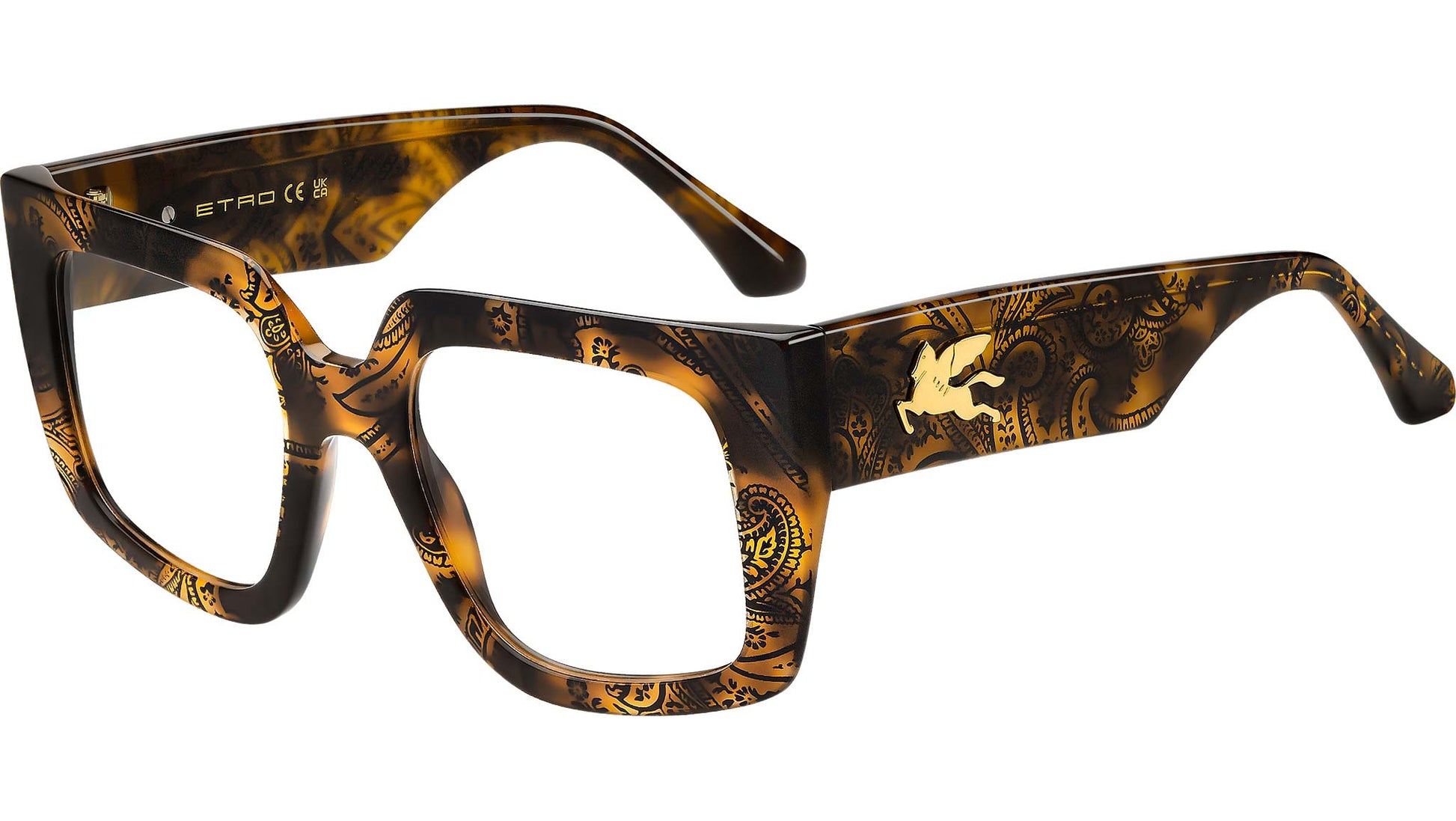 Etro 0077 2VM glasses for women, featuring havana pattern squared acetate frame and demo lenses. Refined and quintessentially ETRO, these optical glasses make a stunning statement with their bold shape, exquisite construction and the precious Pegaso detail that catches the light at all angles. They're made from premium acetate developed exclusively for the brand, finished using a milling process, and available in classic black, ETRO's burgundy, and Paisley-patterned variations that give fresh energy to heritage codes. Brand line: Etromania. Style code: 109321. Color code: 2VM. Authorized Etro online reseller. Your glsses will include the original case and accessories and are covered by a 12-month global warranty.