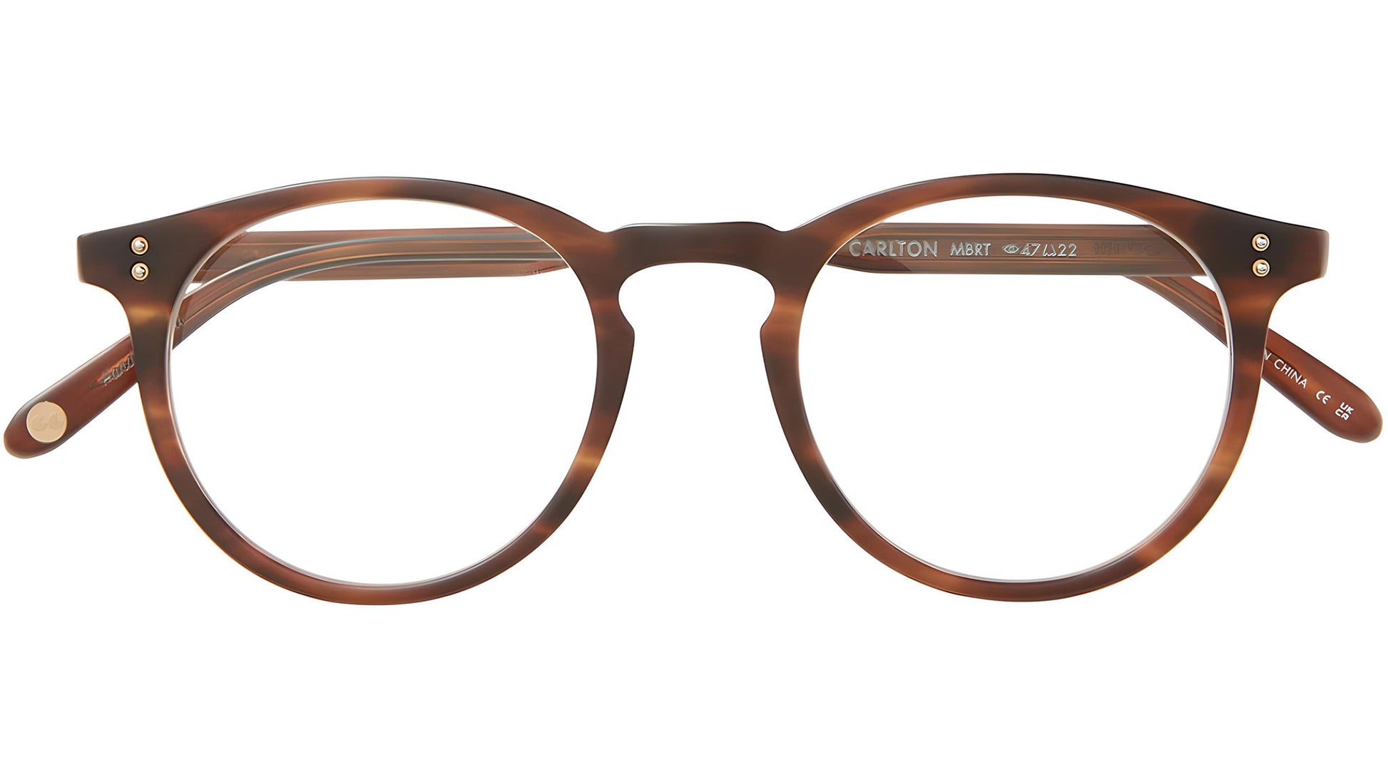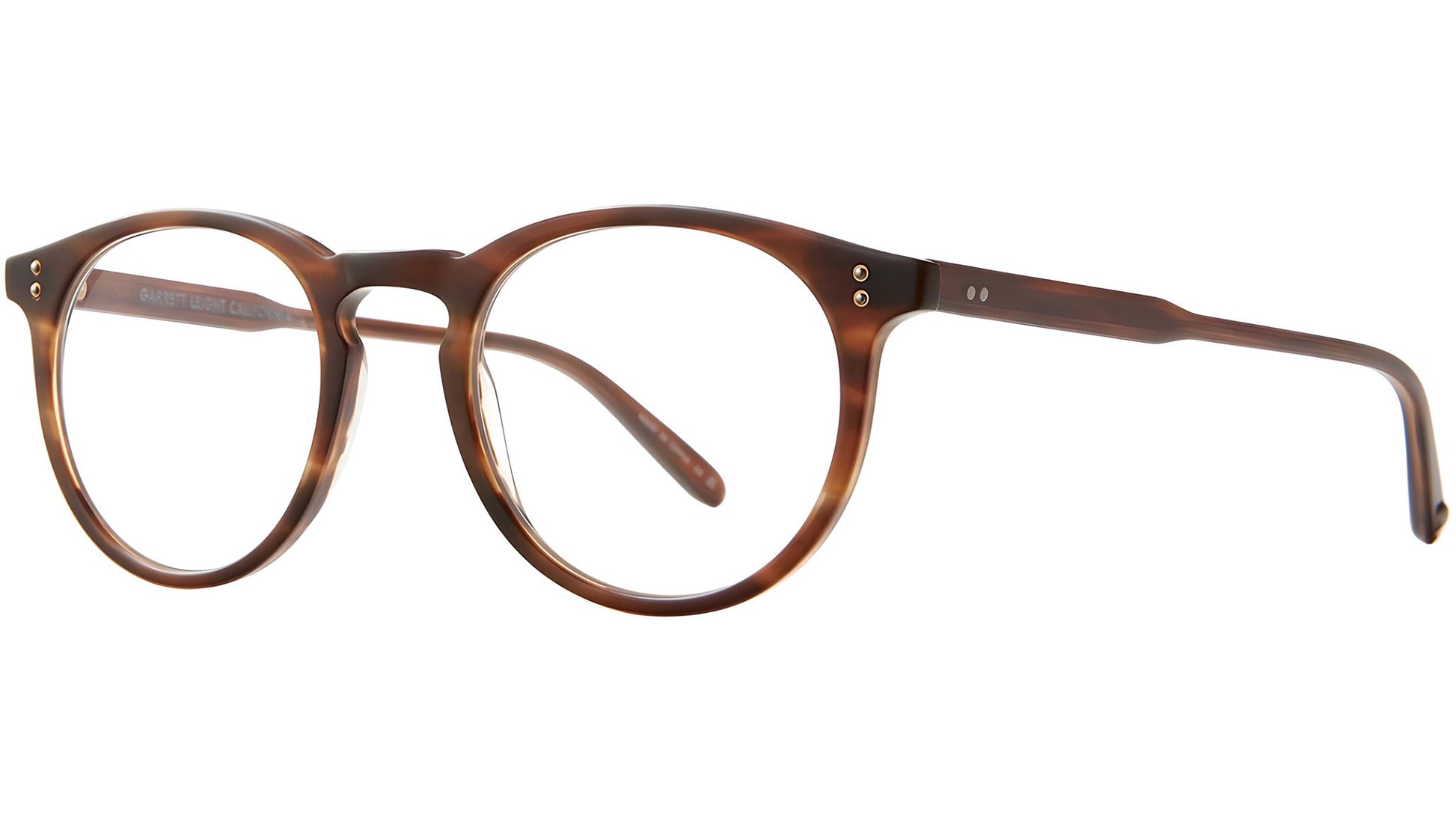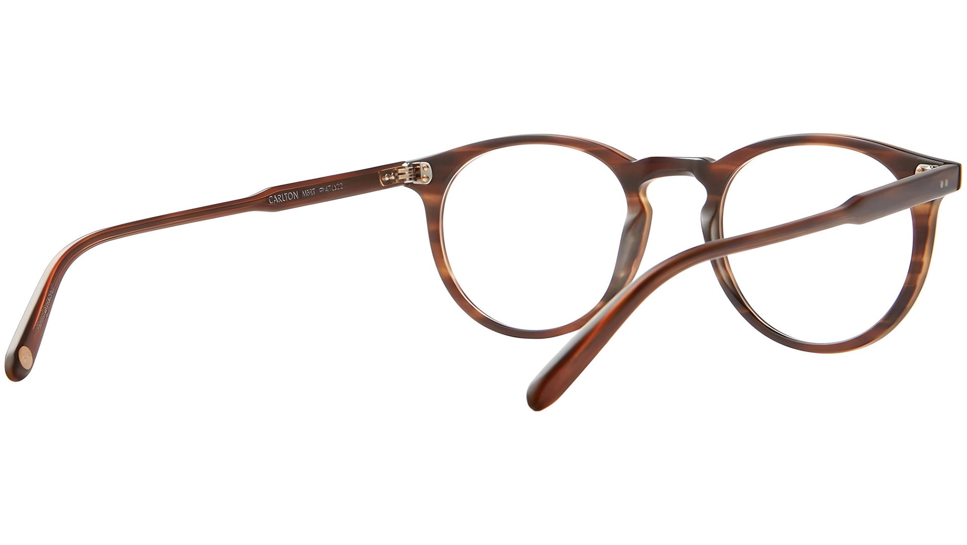 Slim, classic, and lightweight, the Carlton is designed with a keyhole bridge and new medium fit to provide extra versatility. Made from Garrett Leight's new bio-based acetate, the Carlton features distinctive raised rivet pins along the end pieces—a signature of Garrett Leight's sustainable collection. Cured cellulose bio-based acetate with nickel silver core wire. CR-39 demo lenses with AR coating. Five barrel hinges with real rivets. Standard GLCO case