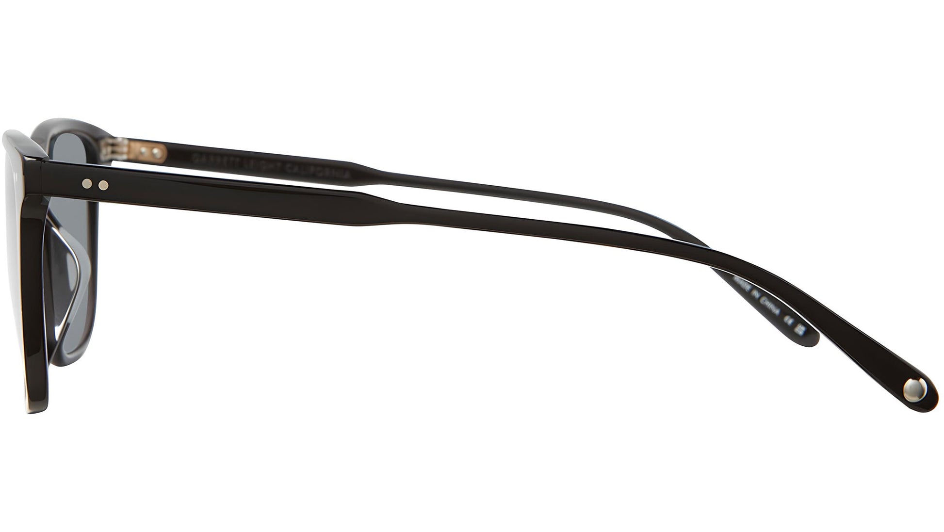 A perfectly proportioned frame that includes an assemblage of Garrett Leight's classic design elements. Inspired by the classic wayfarer style from the 60’s this thin, lightweight frame features Garrett Leight's custom GLCO graphic print double pressed core wire, 5-barrel hinge and saddle nose bridge. Cured Cellulose Acetate with Nickel Silver Core Wire. Premium Glass Polar lenses with 100% UV protection