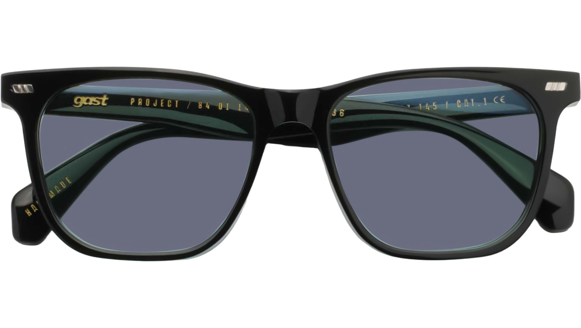 Gast TAZI sunglasses featuring mint squared acetate frame and mint lenses. These handmade sunglasses feature a black acetate frame and mint-flavored semi-flat nylon lenses equipped with an anti-reflective inner coating, providing 100% UVA and UVB protection. The design includes durable five-barrel metal hinges for added stability and comfort. Style name: TAZI. Color code: TZ04. Authorized Gast online reseller. Your glasses will include the original case and accessories and are covered by a 12-month global warranty.