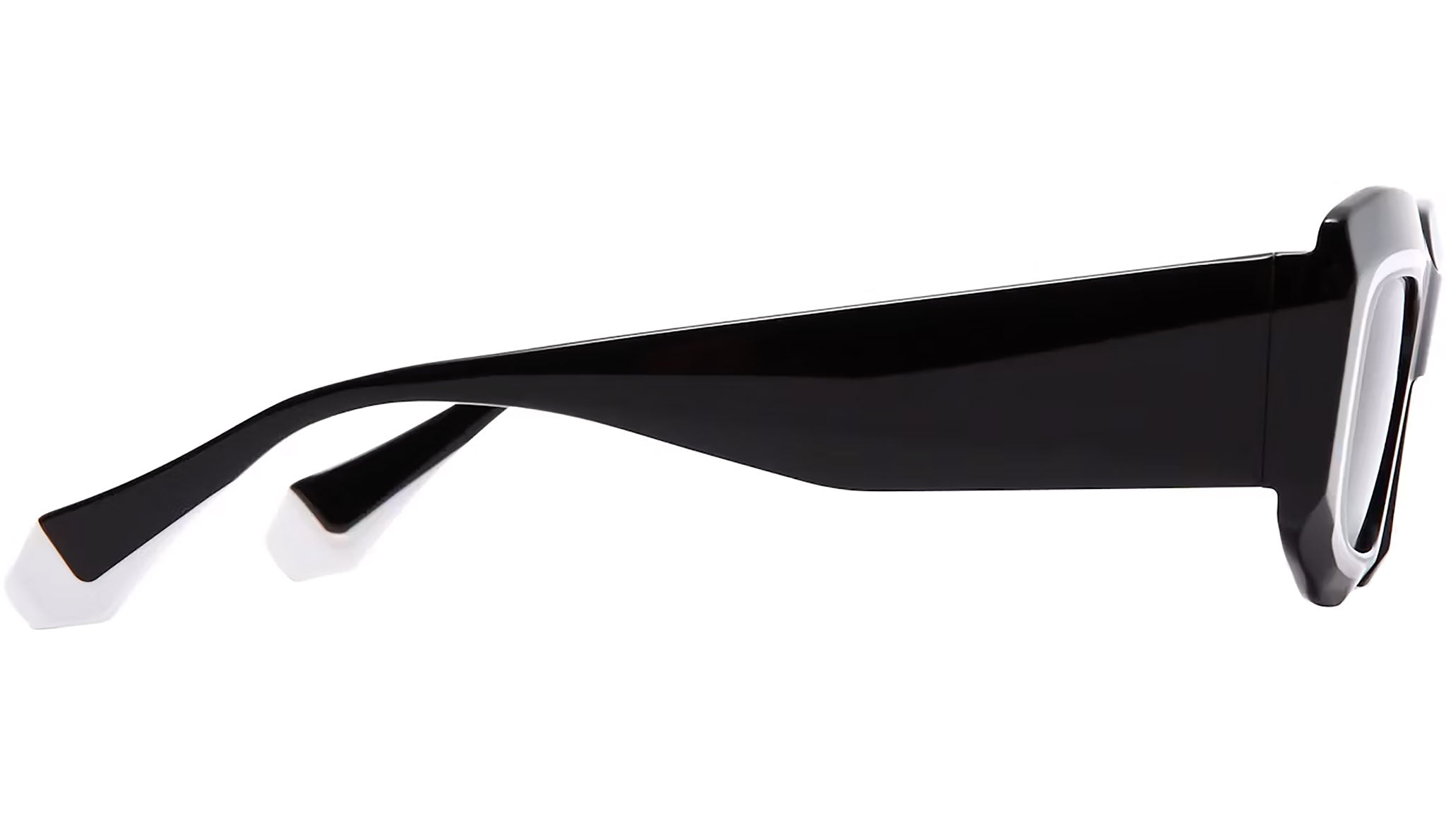 Gigi Studios Eyewar sunglasses model 6877 Chess color code 1 in black. A classic square full rim acetate glasses with grey lenses. The brand ensures the highest quality through their meticulous selection of materials, partnering with top suppliers from Italy, Germany, and Japan. Gigi Studios provides an exceptional visual experience with CR-39 lenses that are comfortable and secure, effectively absorbing UVA and UVB rays.